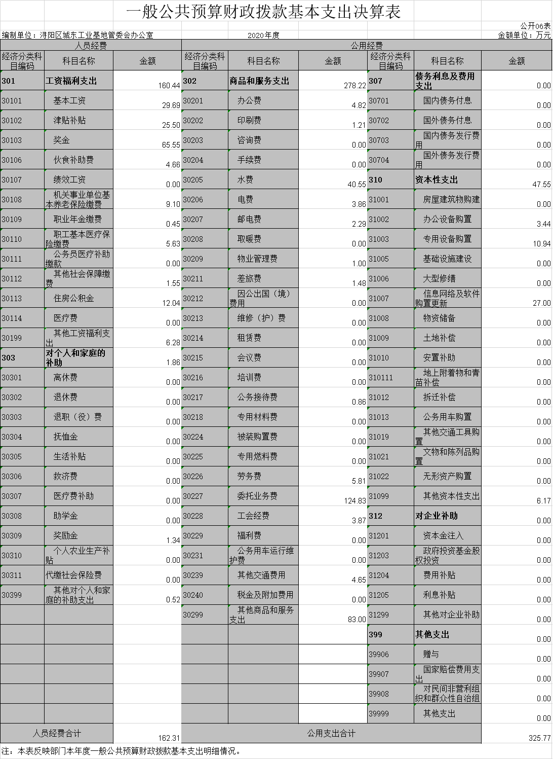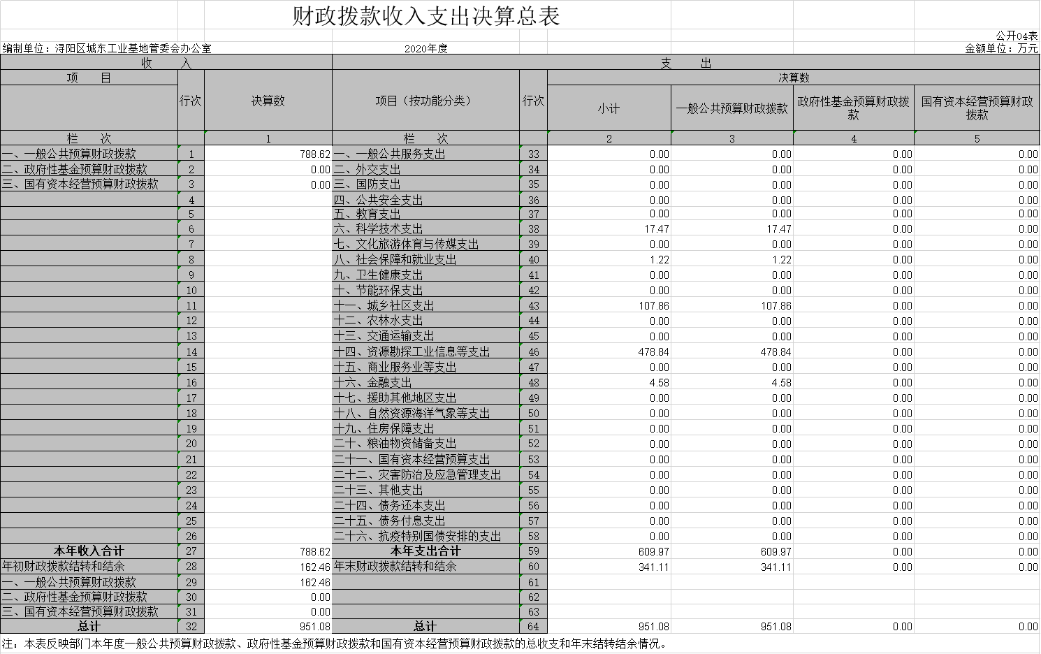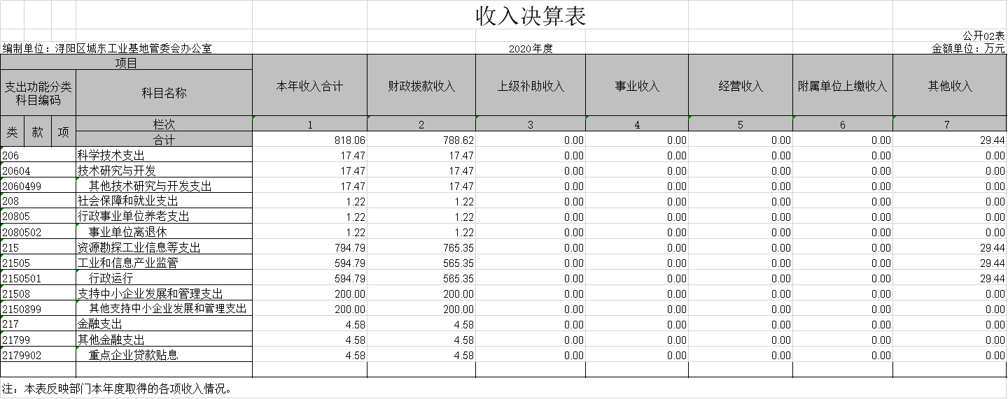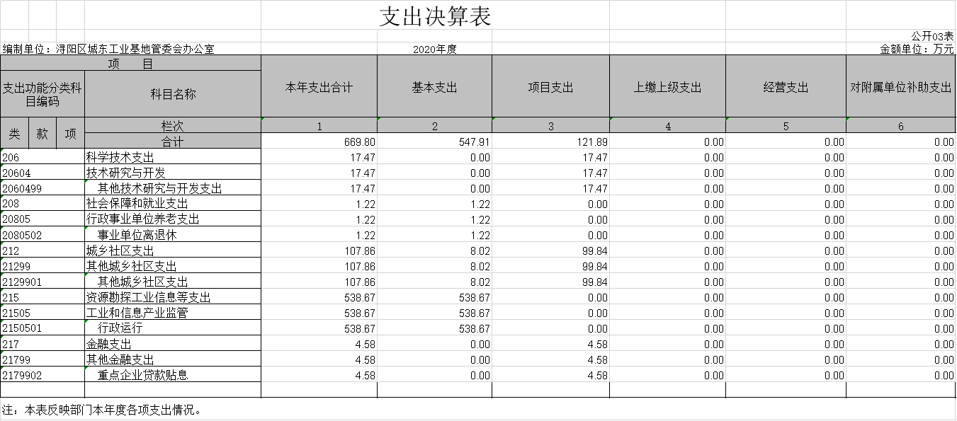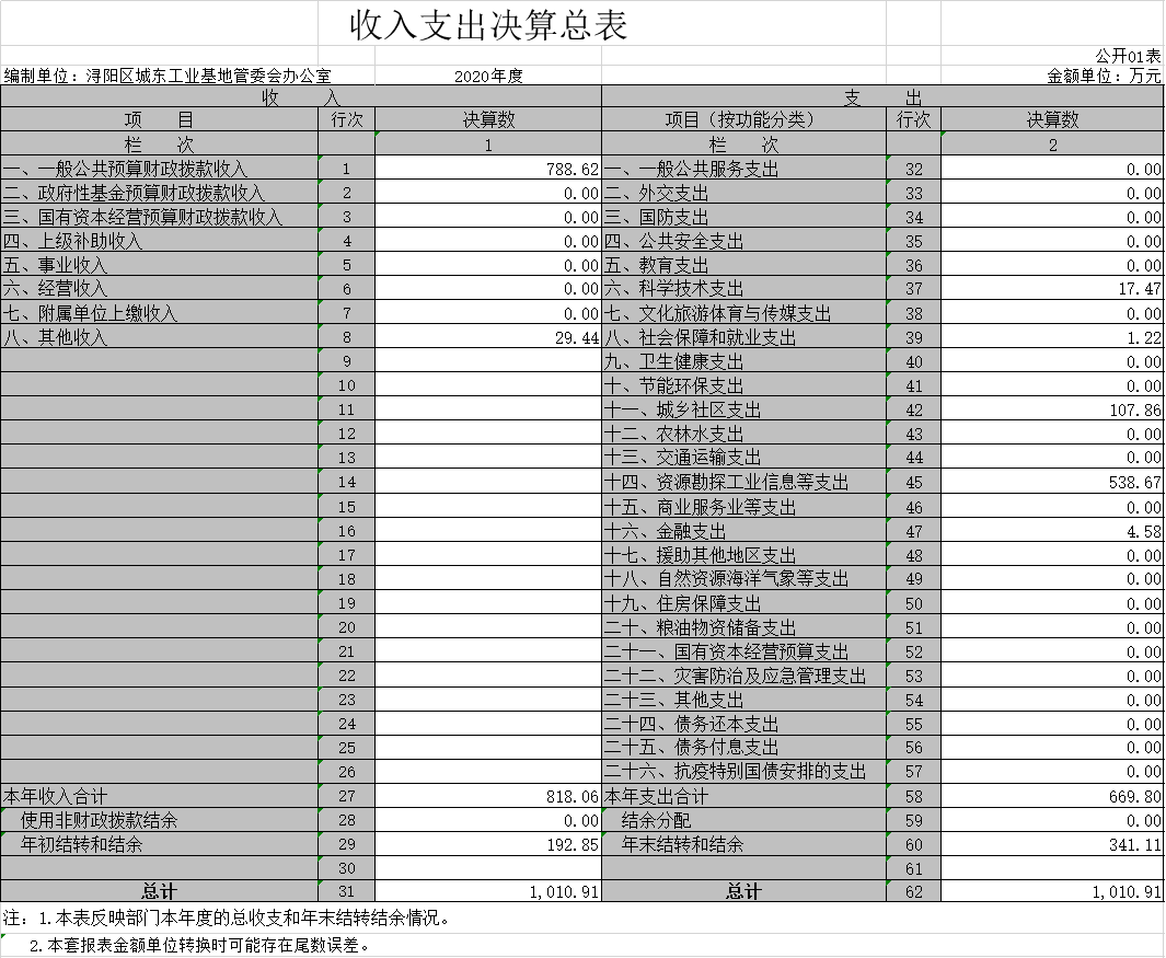 浔阳区城东工业基地管委会办公室2020年度部门决算