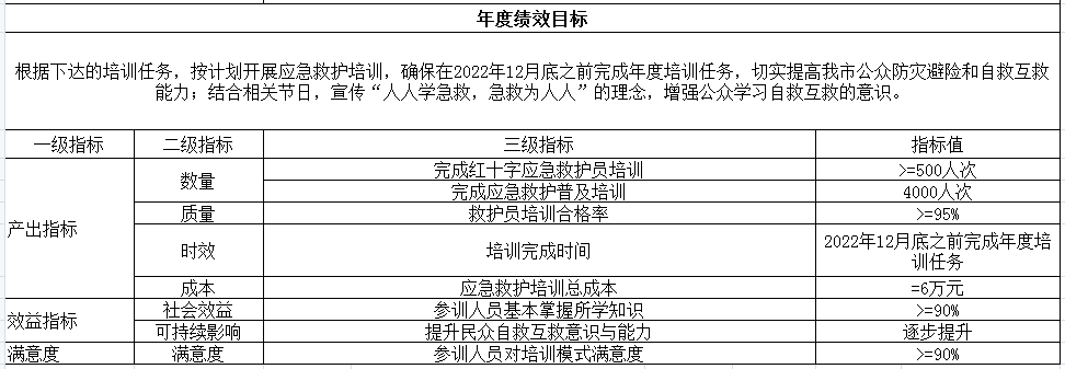 根据下达的培训任务,按计划开展应急救护培训,确保在2022年12月底之前完成年度培训任务,切实提高我市公众防灾避险和自救互救能力;结合相关节日,宣传“人人学急救,急救为人人”的理念,增强公众学习自救互救的意识。