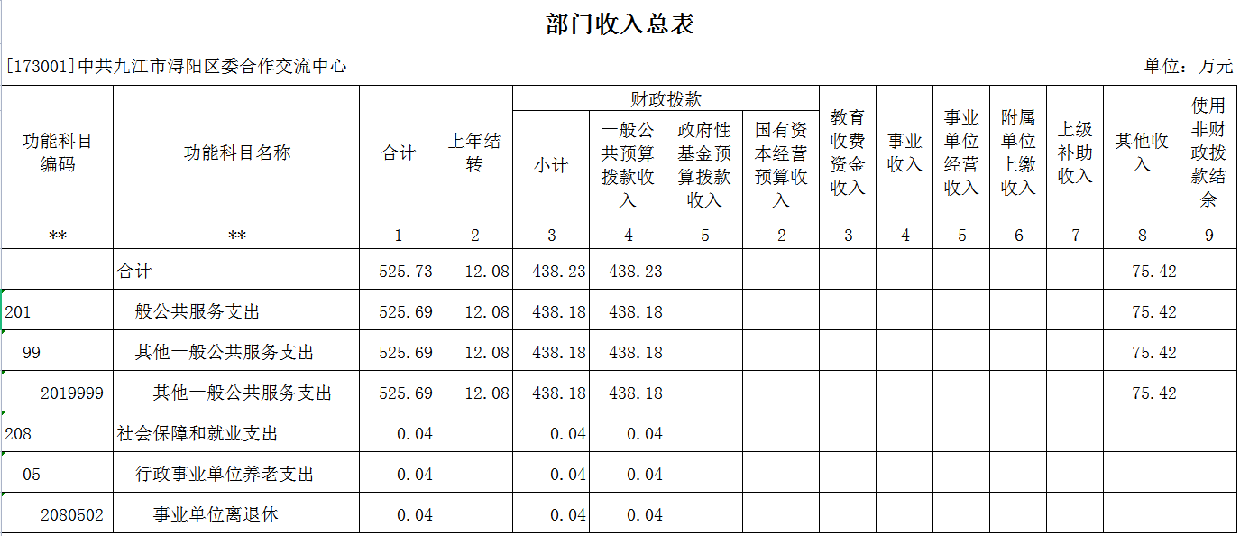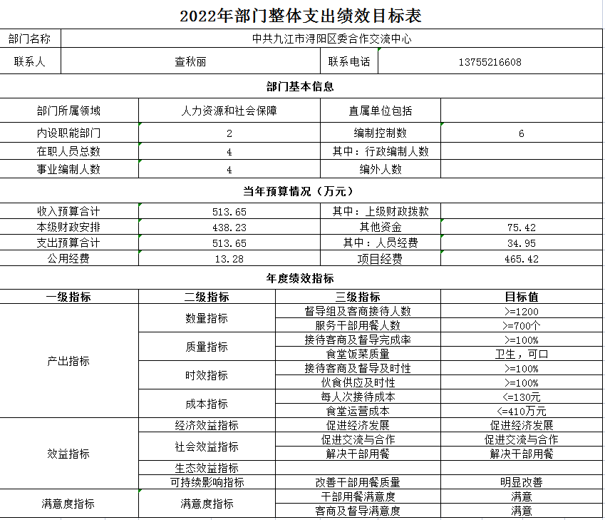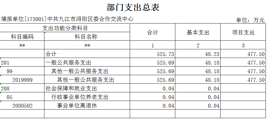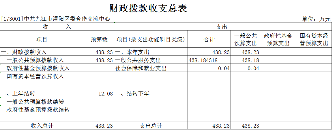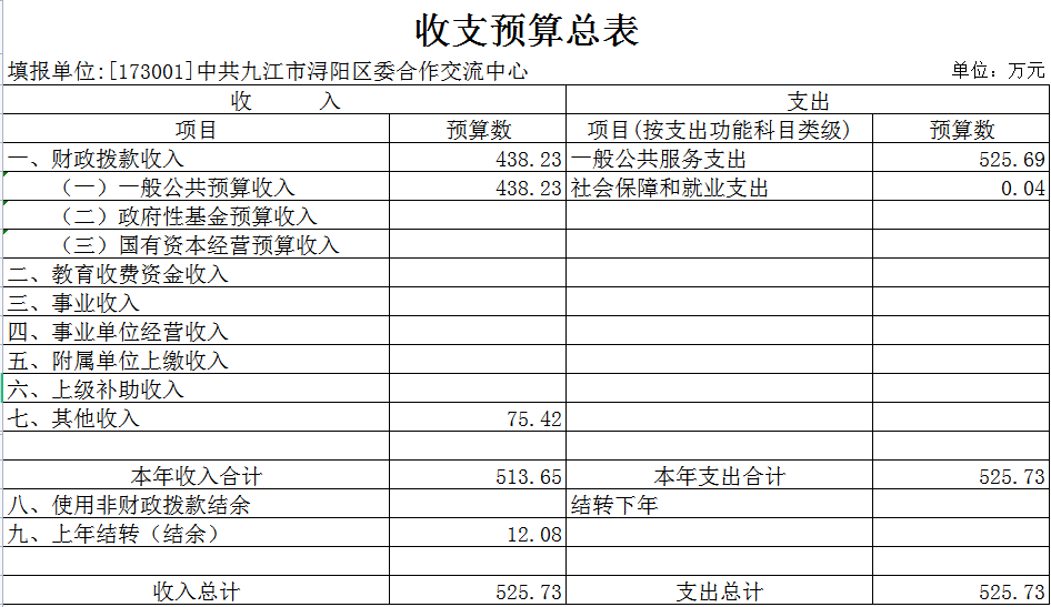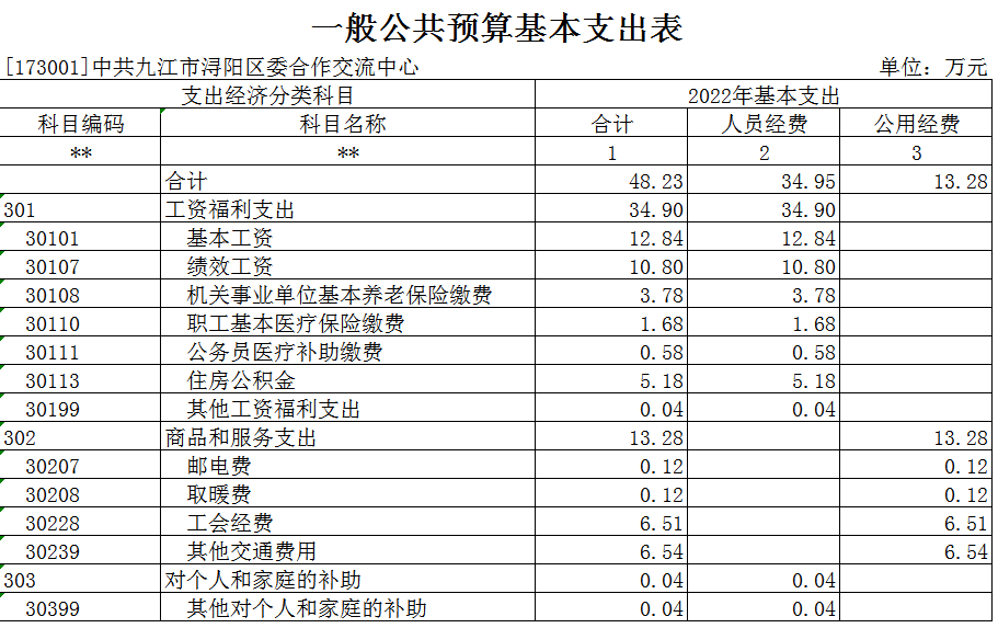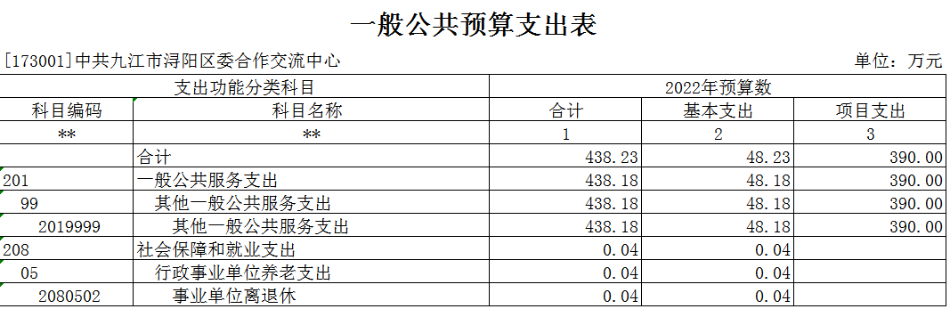 浔阳区委合作交流中心2022年部门预算表