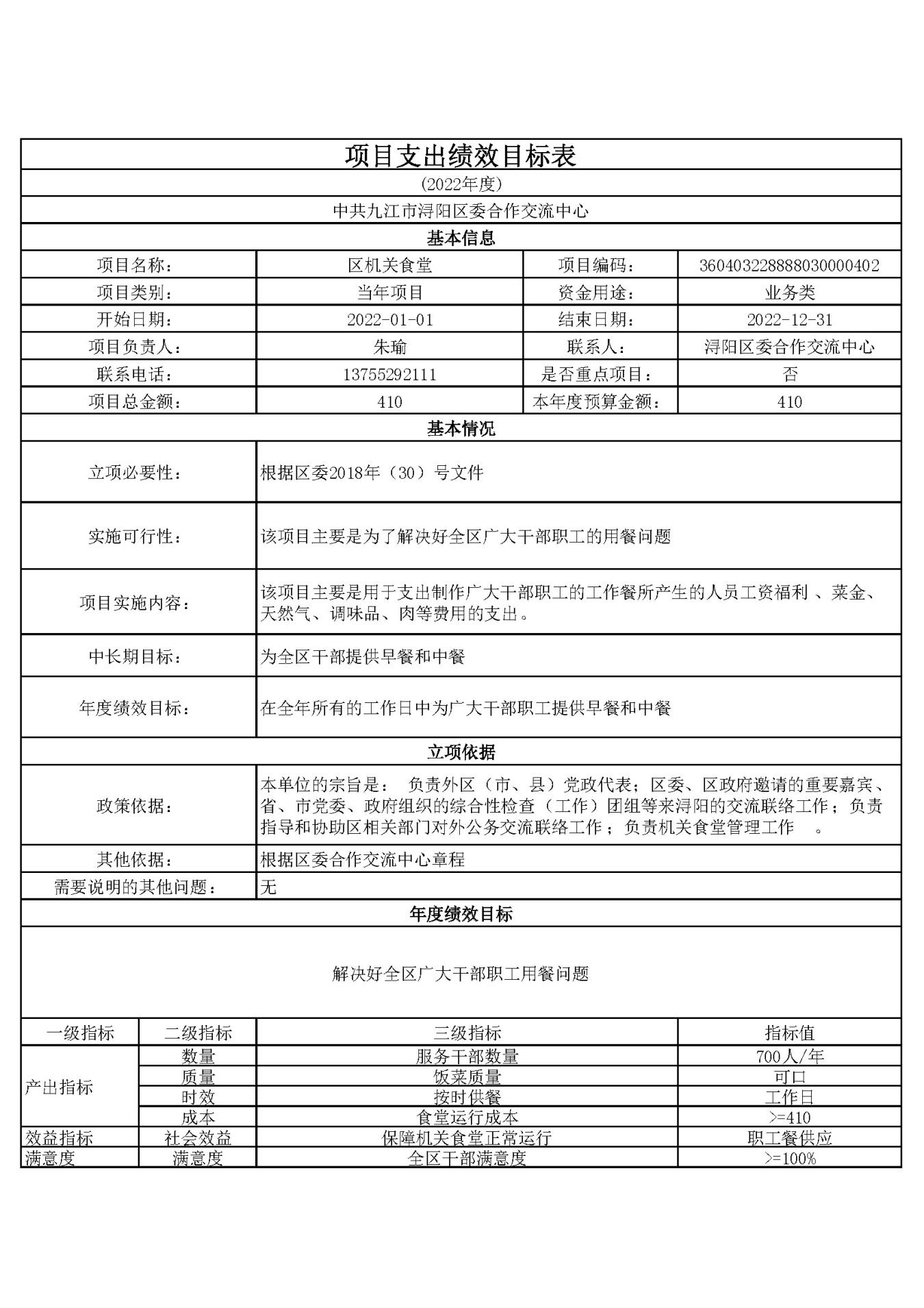 2)立项依据<<中共浔阳区委合作交流中心章程>>中的第十条本单位的宗旨中指出:负责机关食堂管理工作