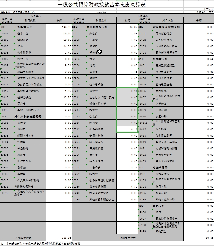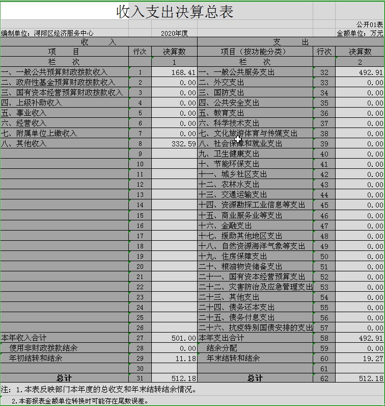 浔阳区经济服务中心2020年度部门决算公开