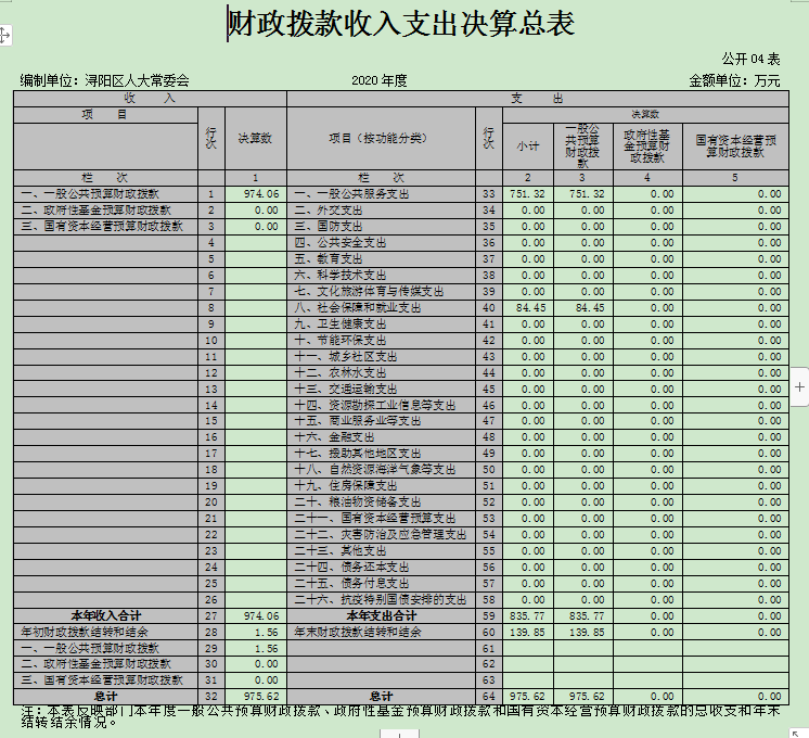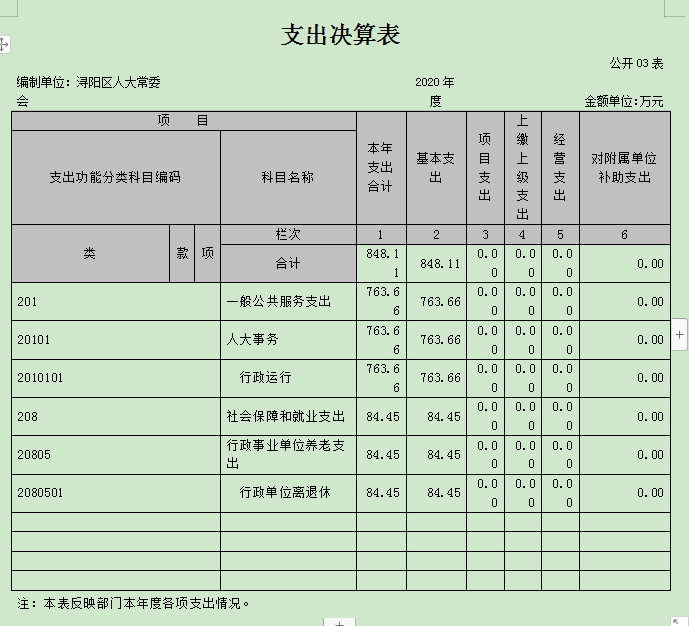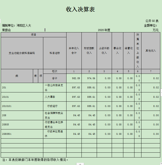 编制单位:浔阳区人大常委会 | 2020年度 | 金额单位:万元 | |||