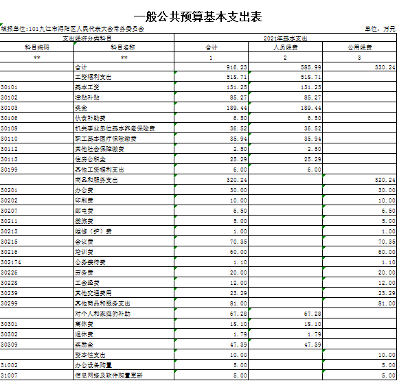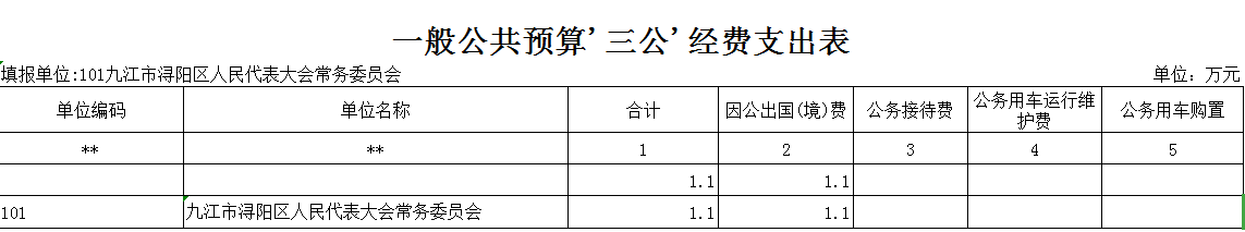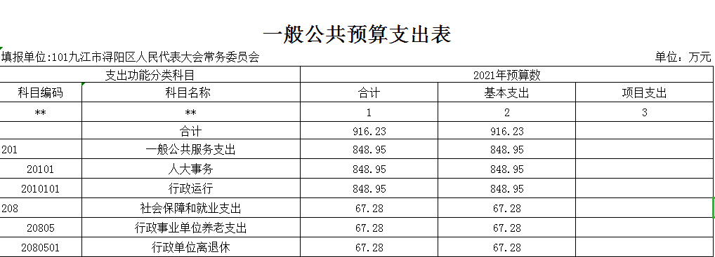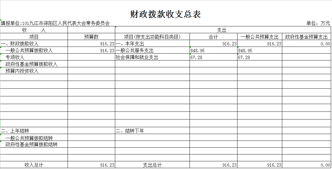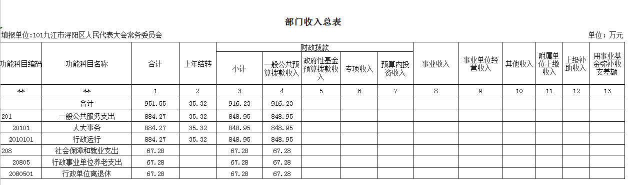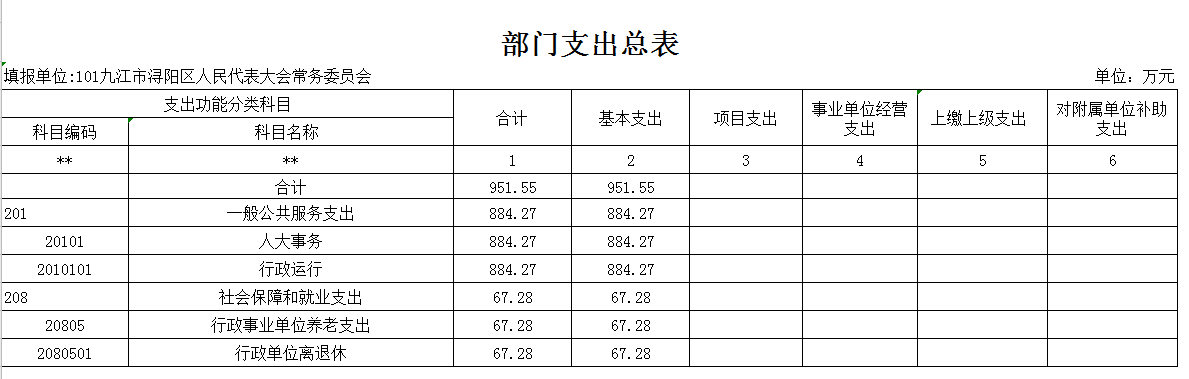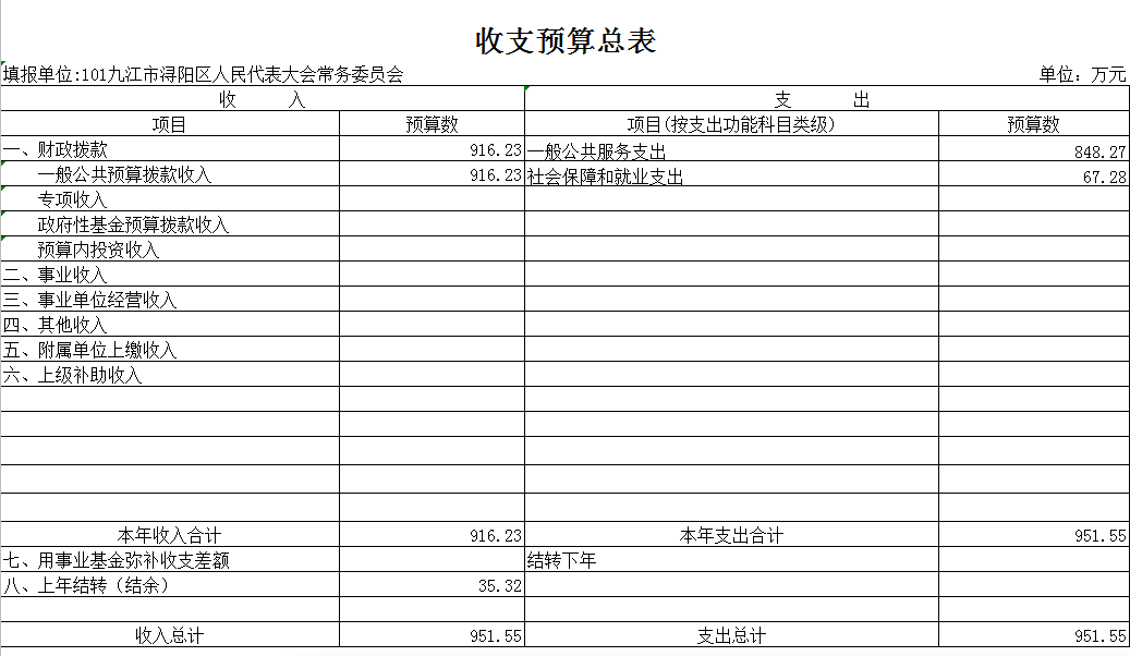 填报单位:101九江市浔阳区人民代表大会常务委员会 单位:万元