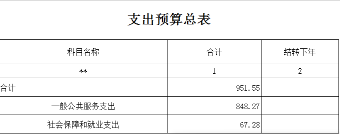 按支出功能科目划分:一般公共服务支出906.23万元,占支出预算总额的95.23%。