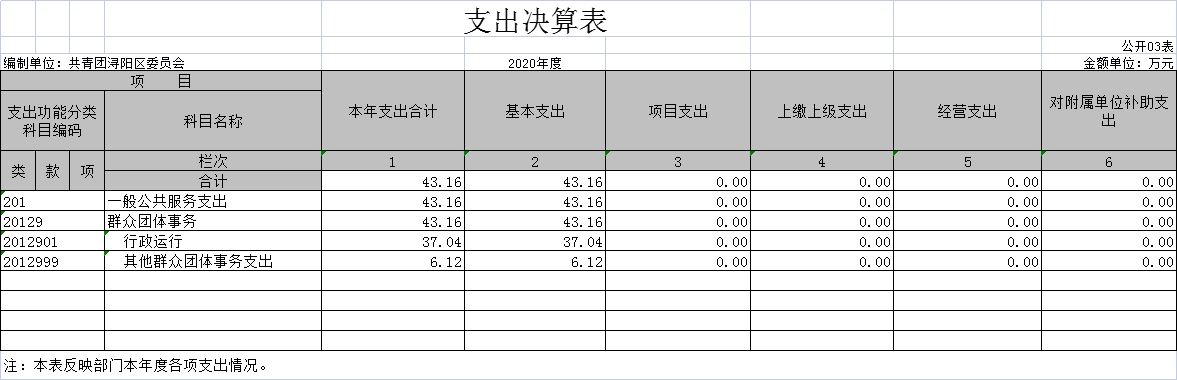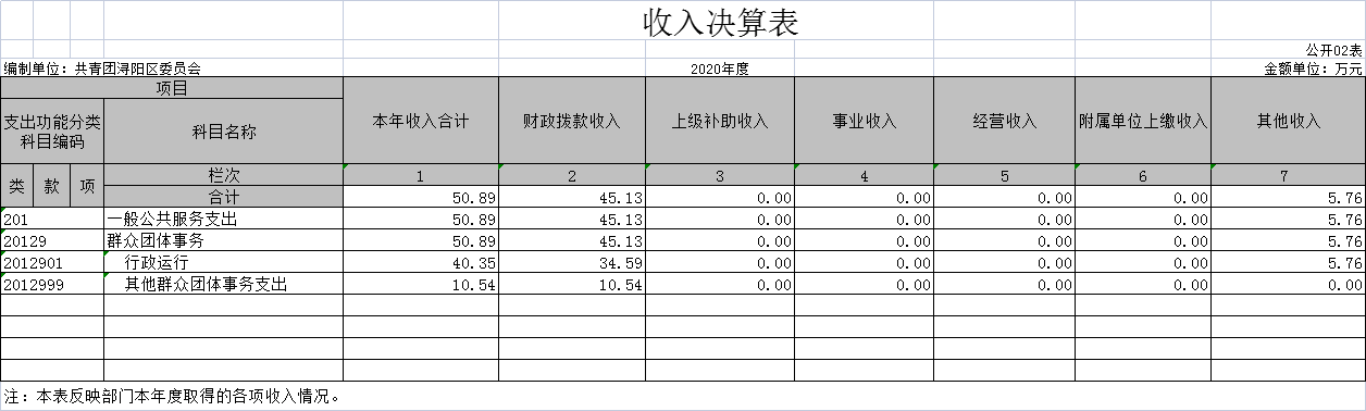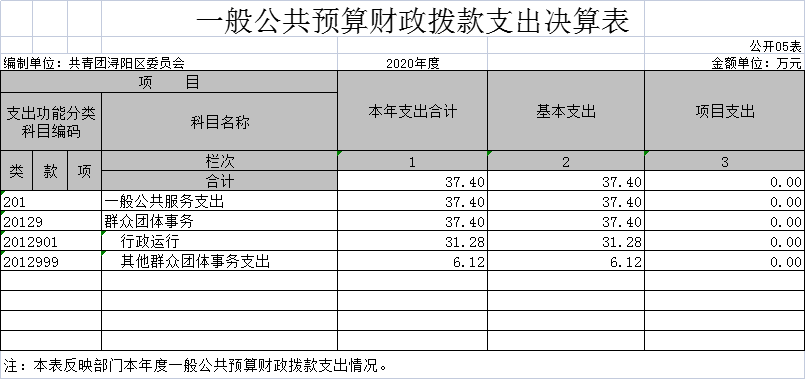 共青团浔阳区委2020年度部门决算