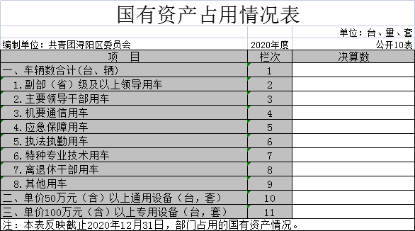 十、国有资产占用情况表