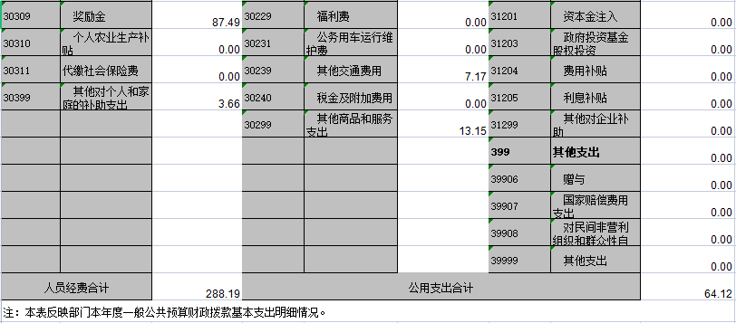 (九)“三公”经费:指部门用财政拨款安排的因公出国(境)费、公务用车购置及运行费和公务接待费。其中,因公出国(境)费反映单位公务出国(境)的国际旅费、国外城市间交通费、住宿费、伙食费、培训费、公杂费等支出;公务用车购置及运行费反映单位公务用车购置支出(含车辆购置税)及租用费、燃料费、维修费、过路过桥费、保险费、安全奖励费用等支出;公务接待费反映单位按规定开支的各类公务接待(含外宾接待)支出。