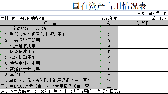 截止2020年12月31日,本部门国有资产占用情况见公开10表《国有资产占用情况表》。