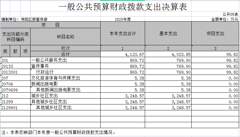 纳入本套部门决算汇编范围的单位共1个,包括:浔阳区委宣传部。本部门2020年共有预算单位1个,包括部本级和下属3个事业单位(区融媒体中心、区文联、区网信办),本部门2020年年末实有人数24人,其中在职人员24人,离休人员0人,退休人员0人。