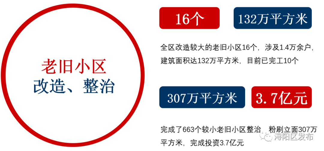据了解,全区改造较大的老旧小区16个,涉及1.4万余户,建筑面积达132万平方米,目前已完工10个;完成了663个较小老旧小区整治,粉刷立面307万平方米,完成投资3.7亿元,城市面貌明显改善,百姓生活更加美好。