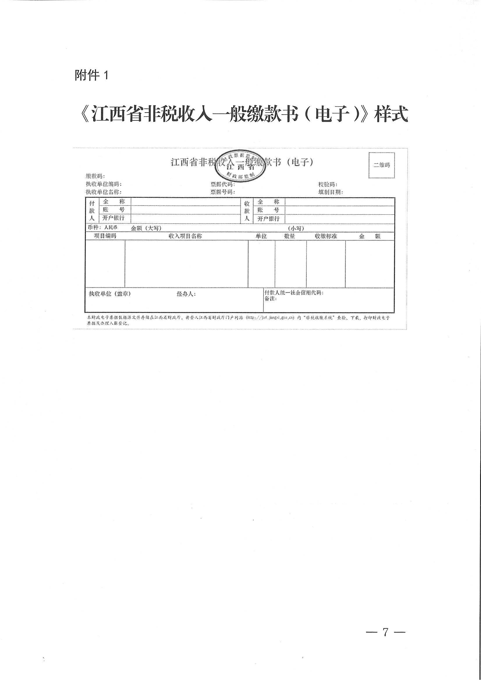 附件:1.《江西省非税收入一般缴款书(电子)》样式