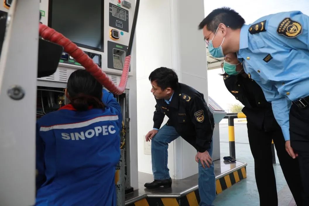 第一行动小组对辖区6家加油站油气回收装置是否正常使用、臭氧管控错峰加油落实等情况开展检查