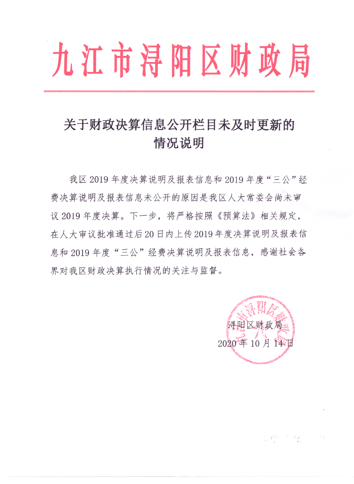 关于2019年度决算说明及报表信息和“三公”经费决算说明及报表信息未公开的情况说明