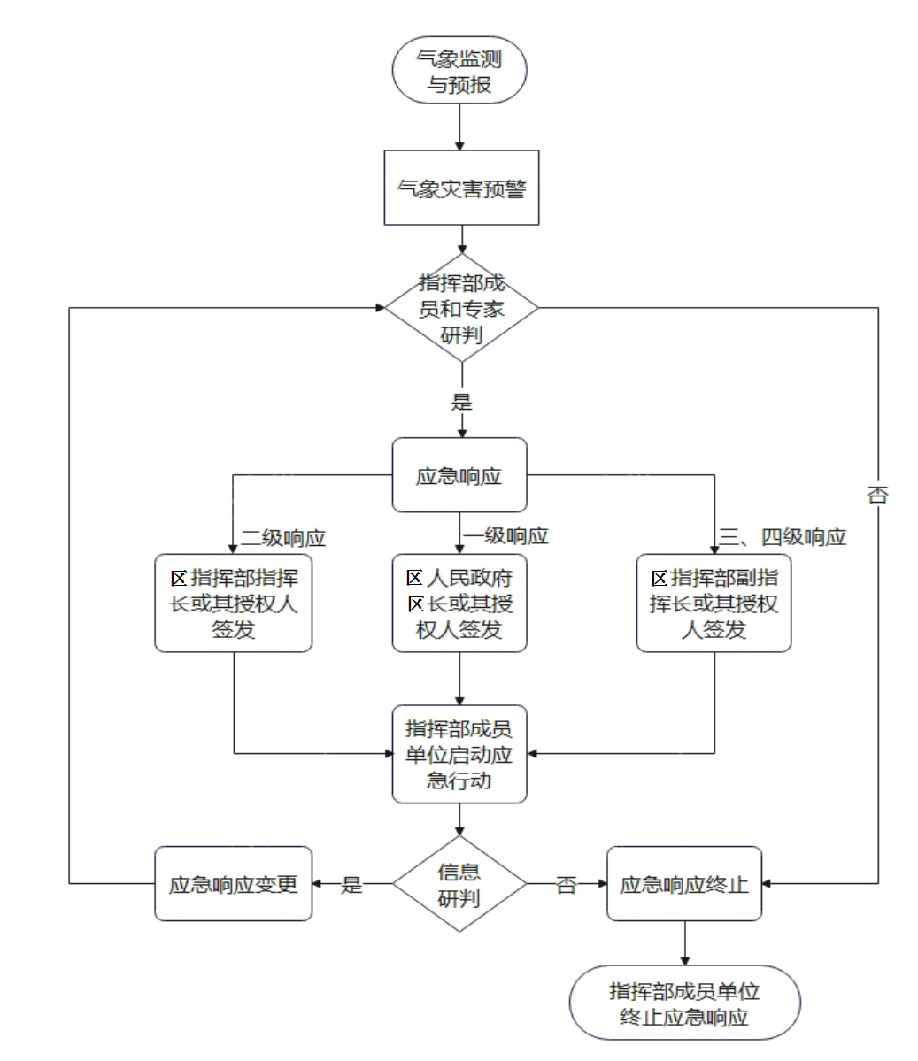 (4)根据区指挥部决定,负责启动、变更或终止气象灾害应急响应;
