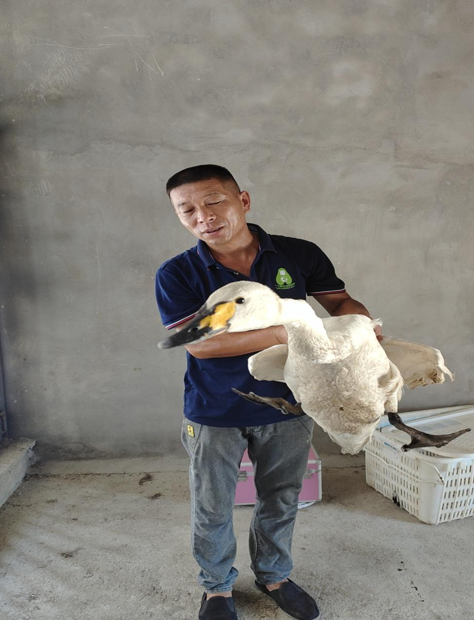 2024年8月4日,浔阳区农业农村水利局接到群众电话称,有一只天鹅受伤需要救助,工作人员立即驱车前往现场,对天鹅进行检查,确认为国家重点二级保护野生动物大天鹅。经过前期处理后,驱车近40公里将天鹅送至九江市野生动物保护站,由专业人员对天鹅进行专业护理。
