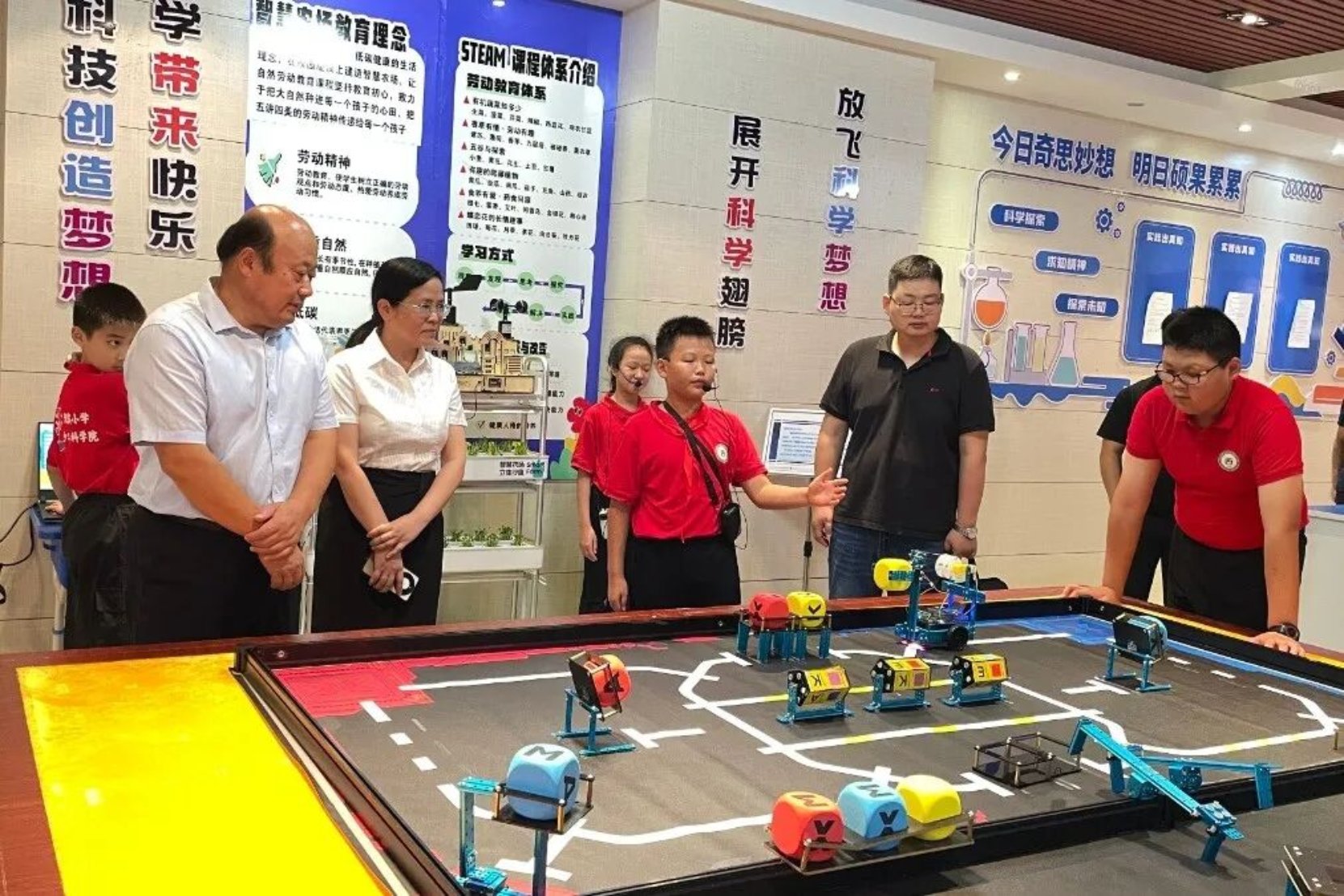 活动伊始,孙殿存一行实地参观了湖滨小学的科技与科普教育设施及相关成果展示,观看了科学综合馆《初心之光》展览。小小讲解员生动细致地进行讲解,湖滨少年科学院的学生们熟练操作无人机、机器人及智慧农场设备等。湖滨小学介绍了学校在科技创新课程设置、科普活动开展以及校园科学文化建设方面的实践与探索。