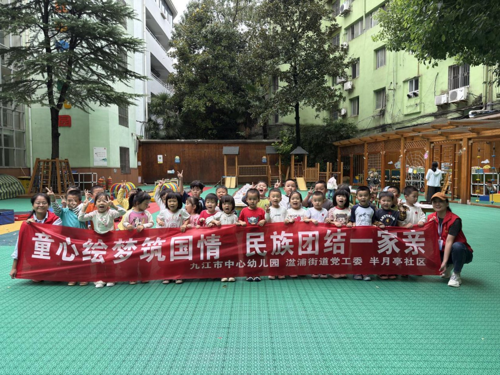 湓浦街道半月亭社区联合九江市中心幼儿园开展 “童心绘梦筑国庆 民族团结一家亲” 主题活动