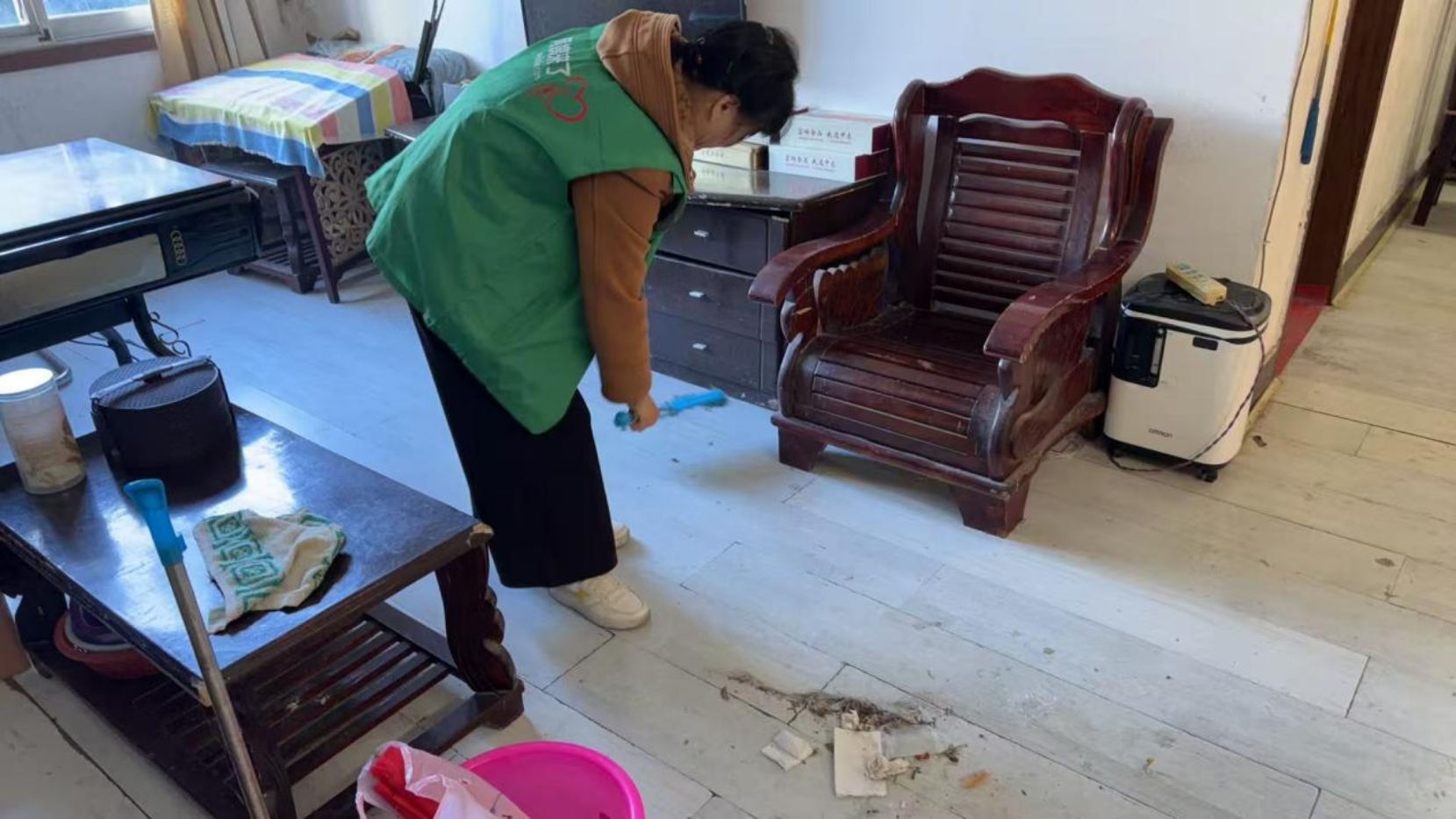 今年79岁的熊阿姨是一名有着多年党龄的老党员,此前因视网膜损伤接受治疗后,视力一直未能完全恢复,日常视物模糊,生活多有不便。更让她犯难的是,子女长期在外工作,无法时刻陪伴照料,家中卫生清洁等体力活成了她的“心头事”,角落的灰尘、厨房的油污让她力不从心。