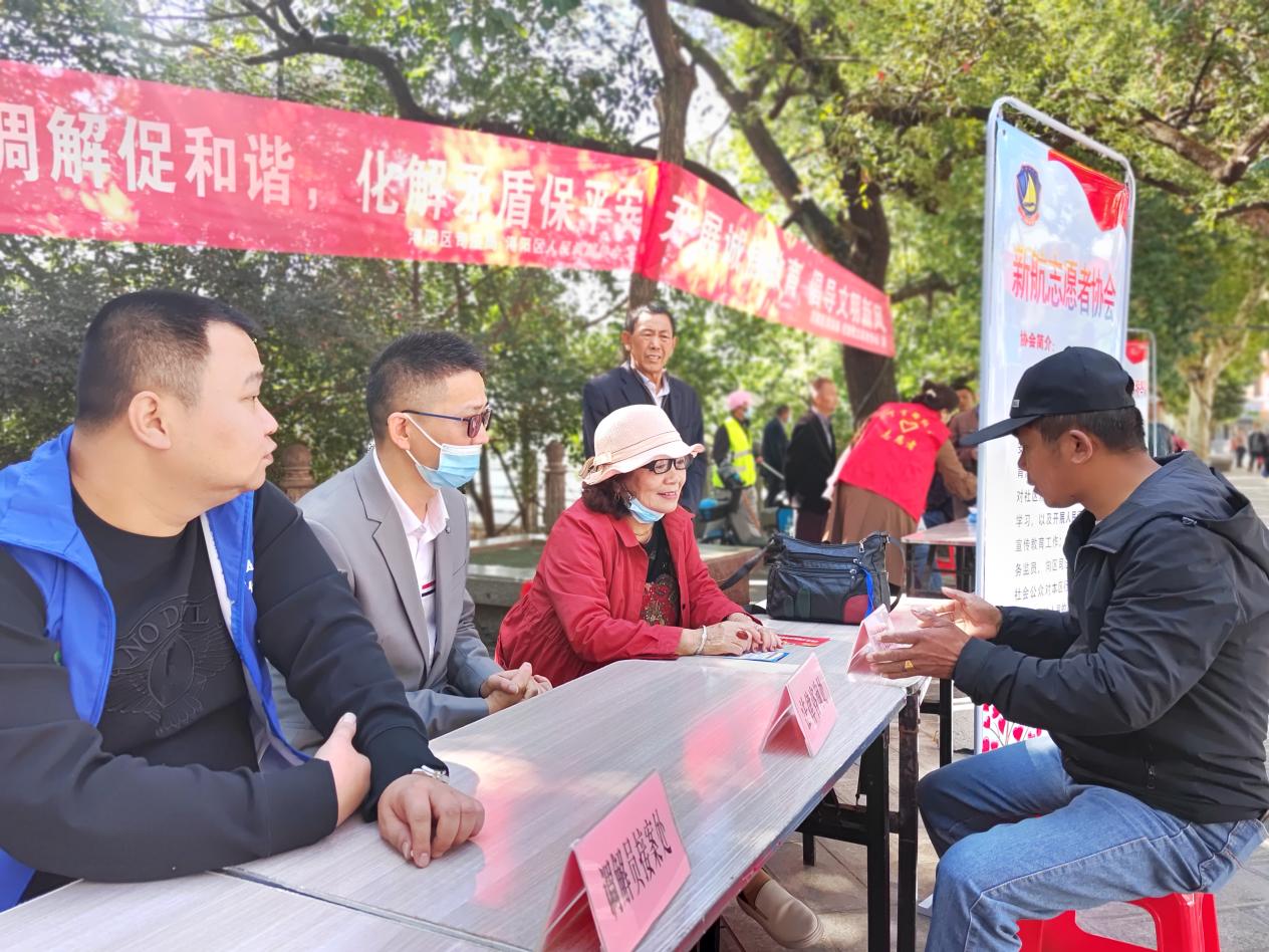 近日,浔阳区司法局联合区新航志愿者协会、区人民调解协会走进九江市中心烟水亭广场开展了“人民调解促和谐、化解矛盾保平安”主题宣传活动。