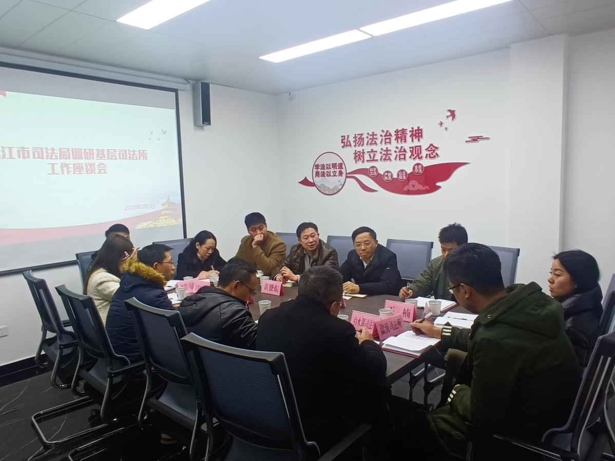 调研组一行来到金鸡坡司法所,实地查看了金鸡坡司法所规范化建设情况以及机构设置、人员编制、业务用房、信息化建设及职能作用发挥等情况,并与区司法局有关领导以及各司法所长进行座谈,针对司法所规范化建设等一系列问题进行了沟通交流。