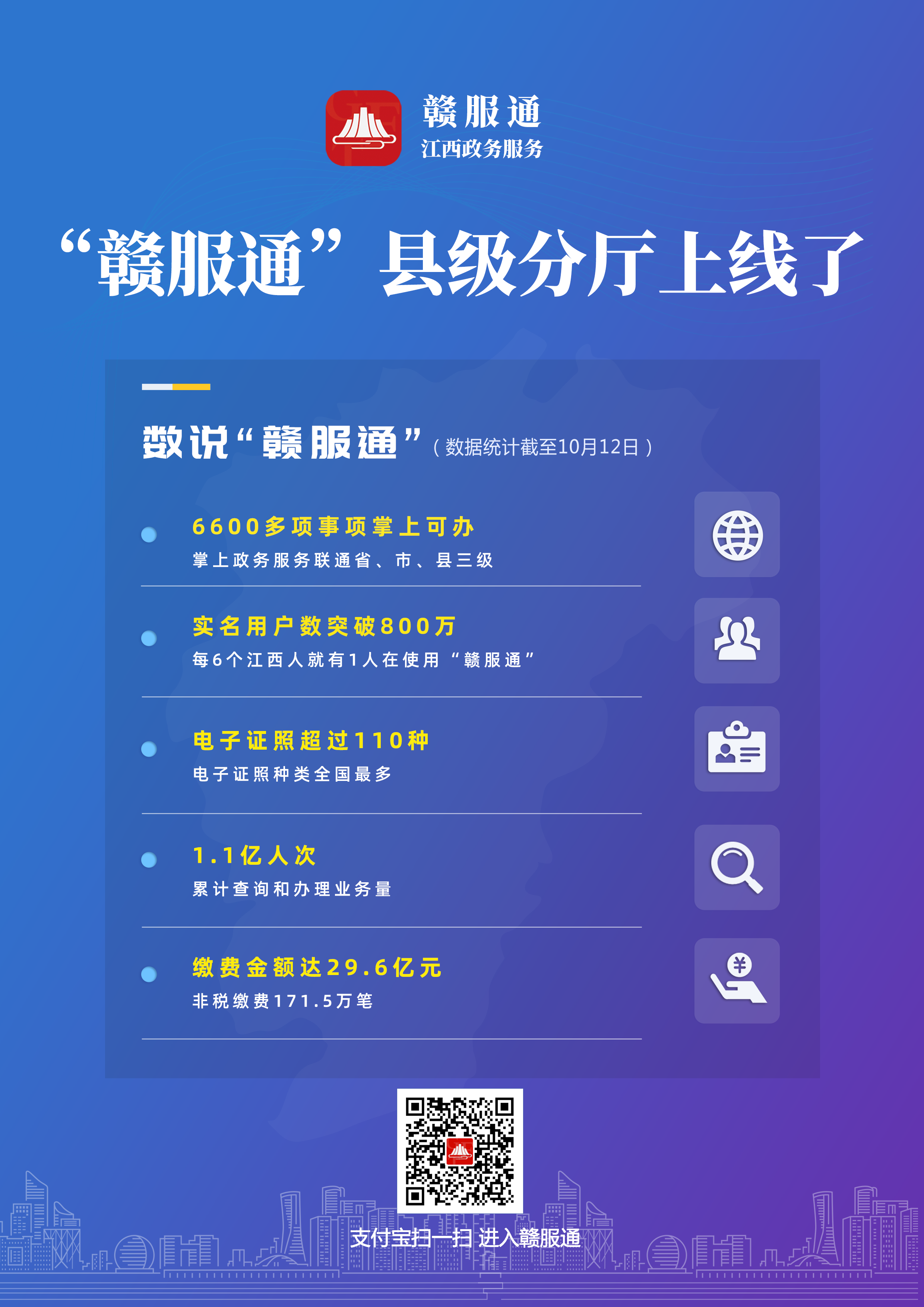 “赣服通”九江市分厅6月26日正式上线运行,14个县区分厅10月18日正式上线运行,标志着我市开始迈向 “全市一体、手机通办”政务服务新阶段。