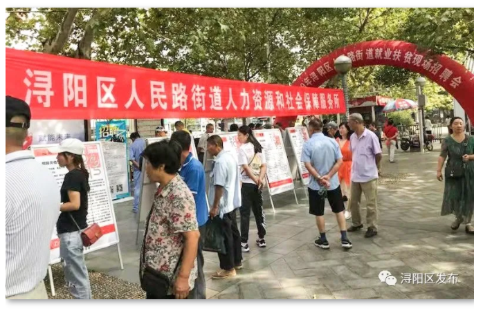 ▲浔阳区人民路街道在烟水亭广场举办了2019年就业扶贫招聘会。当天共有31家企业进场招聘,提供就业岗位700多个,其中还有部分适合残疾人的岗位。