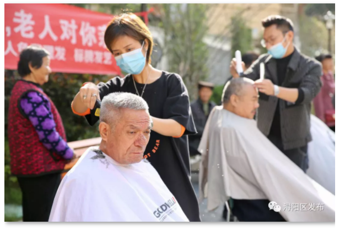 ▲2020年10月26日甘棠街道组织动员社会各界参与为辖区贫困户健康义诊和免费理发。