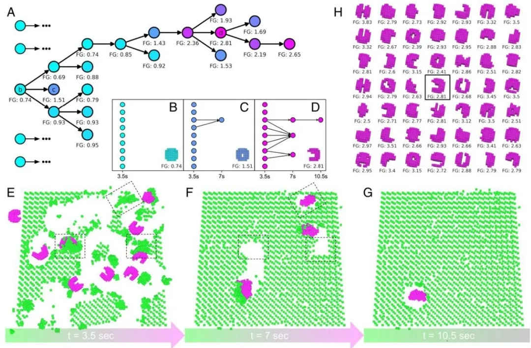 研究人员想到了人工智能。通过在 Deep Green 超级计算机集群上运行的人工智能程序,进化算法在模拟实验中测试出数十亿种细胞形态。不过最终,人工智能“绞尽脑汁”,得到了一个类似于吃豆人的最佳设计。