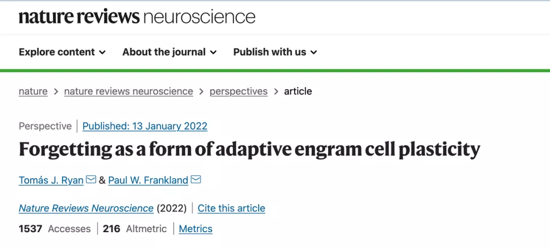 相关研究论文以“Forgetting as a form of adaptive engram cell plasticity”为题,已发表在科学期刊 Nature Reviews Neuroscience 上。