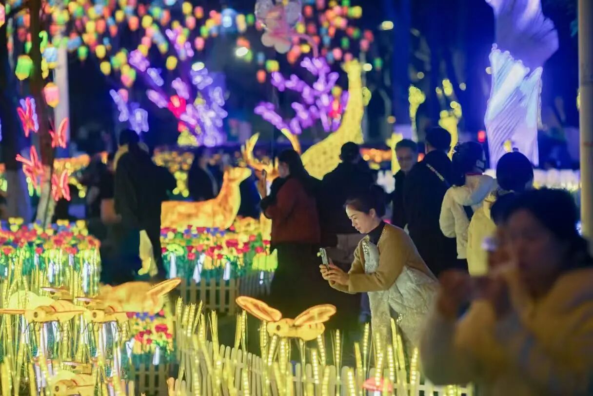 “从早到晚,孩子玩得不想走。”从湖北黄石自驾而来的游客张婷说,“上午逛花市拍照,下午带孩子做手工、看非遗,晚上看灯光秀、听民谣——这一天的行程满满当当,消费也没停过。”