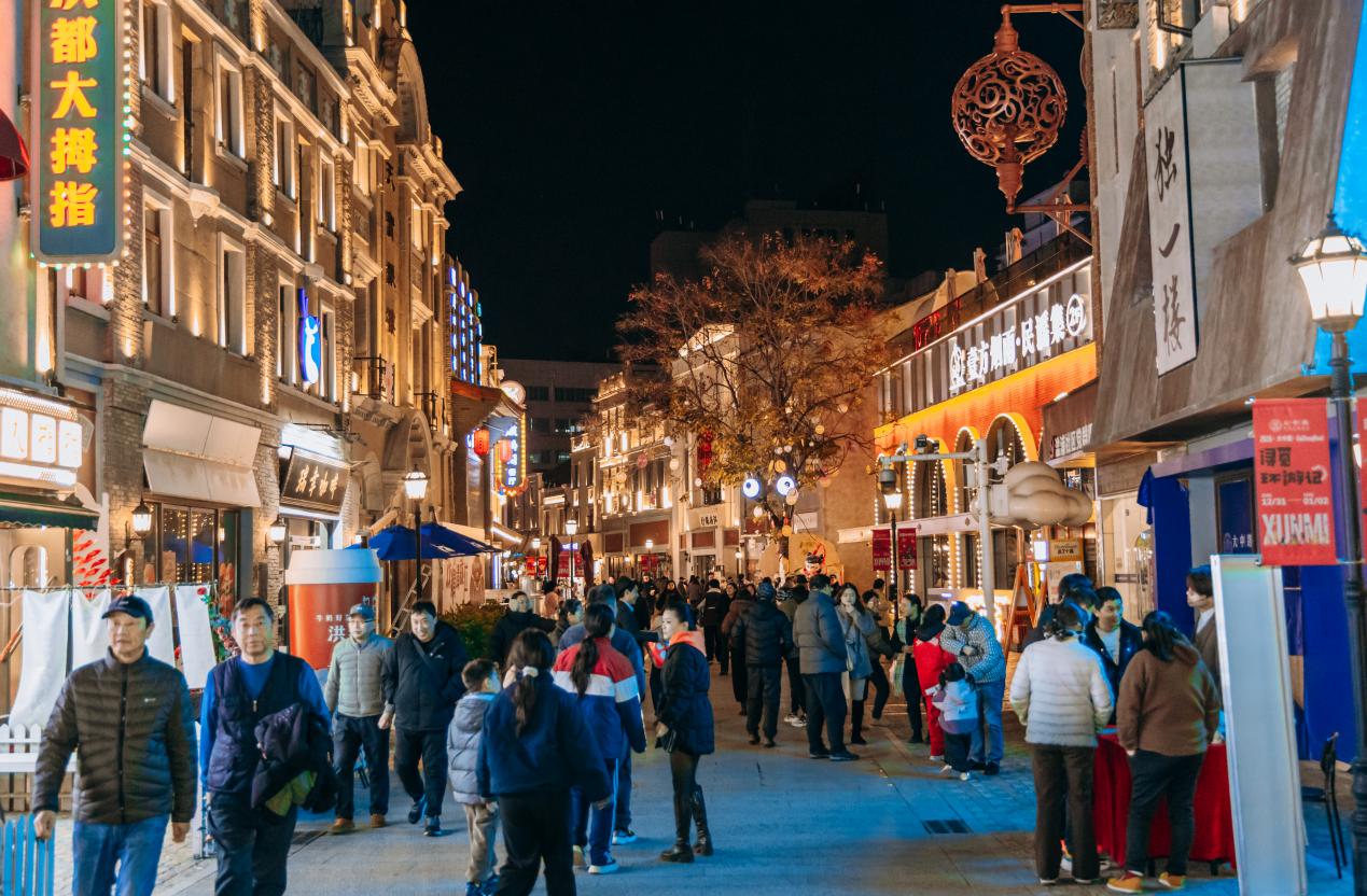 “白天逛非遗文创店,晚上看开心麻花演出,这条老街既有历史底蕴,又充满时尚感!”市民张先生带着家人在街区游玩时感慨道。大中路历史文化街区在保护原有建筑风貌的基础上,融入数字化、智能化设施与文化演艺空间,打造出“老场景新体验”的消费空间。漫步街区,青砖灰瓦的古建筑与霓虹闪烁的招牌相映成趣,老店铺的木质门窗与新式茶饮店的落地玻璃和谐共生,厚重的文化底蕴与网红烟火气、艺术氛围感完美交融。