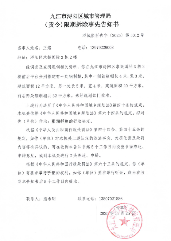 经直接送达、邮寄送达等方式,均无法向你送达《(责令)限期拆除告知书》,现依法公告送达,限你自本公告发出之日起60日内到浔阳区城市管理局人民路中队领取,逾期即视为送达。
