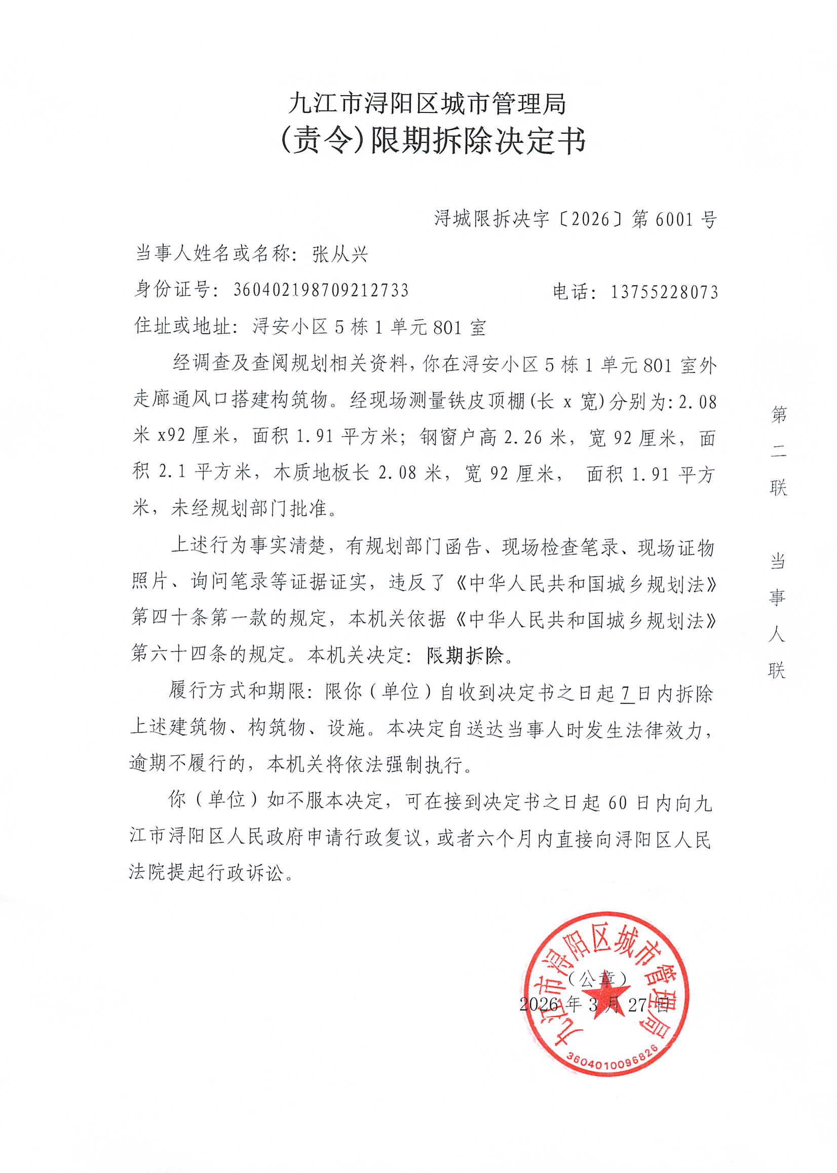 经直接送达、邮寄送达等方式,均无法向你送达《(责令)限期拆除决定书》,现依法公告送达,限你自本公告发出之日起30日内到浔阳区城市管理局甘棠中队领取,逾期即视为送达。