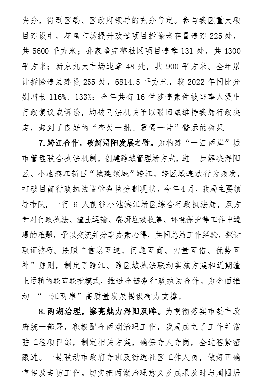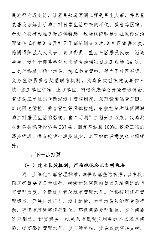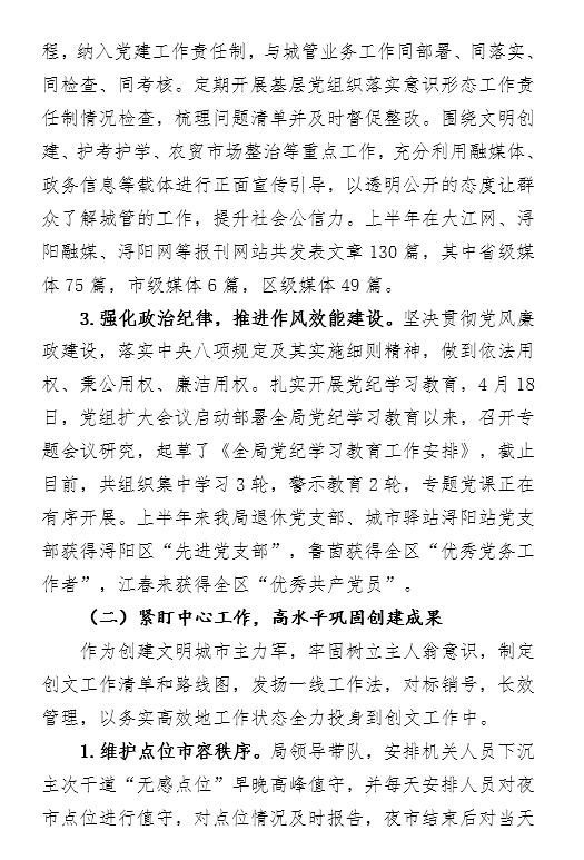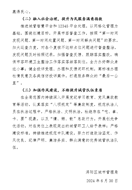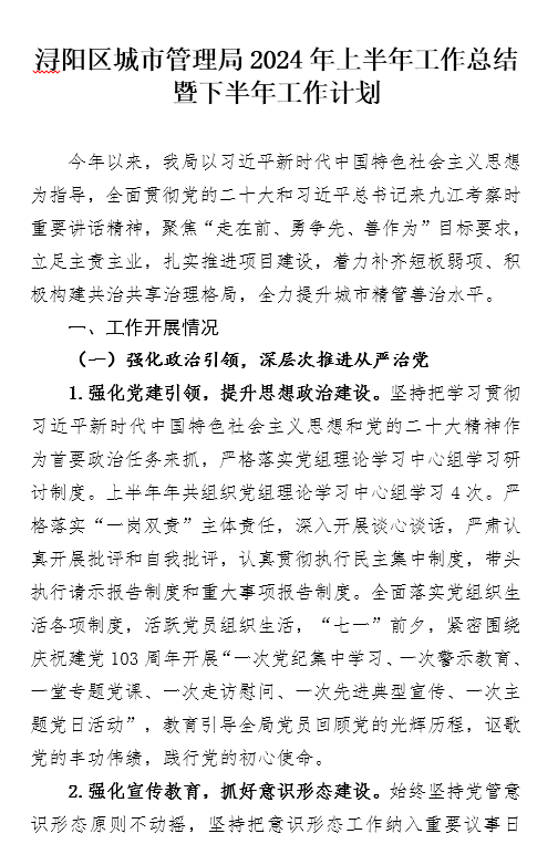 浔阳区城市管理局2024年上半年工作总结暨下半年工作计划