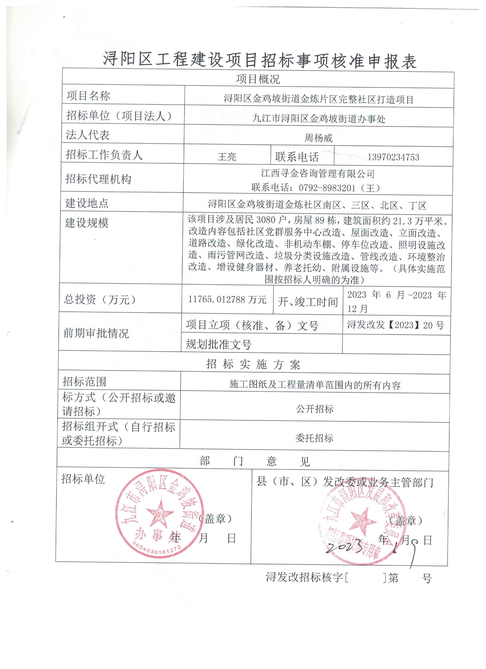 浔阳区金鸡坡街道金炼片区完整社区打造项目招投标核准表
