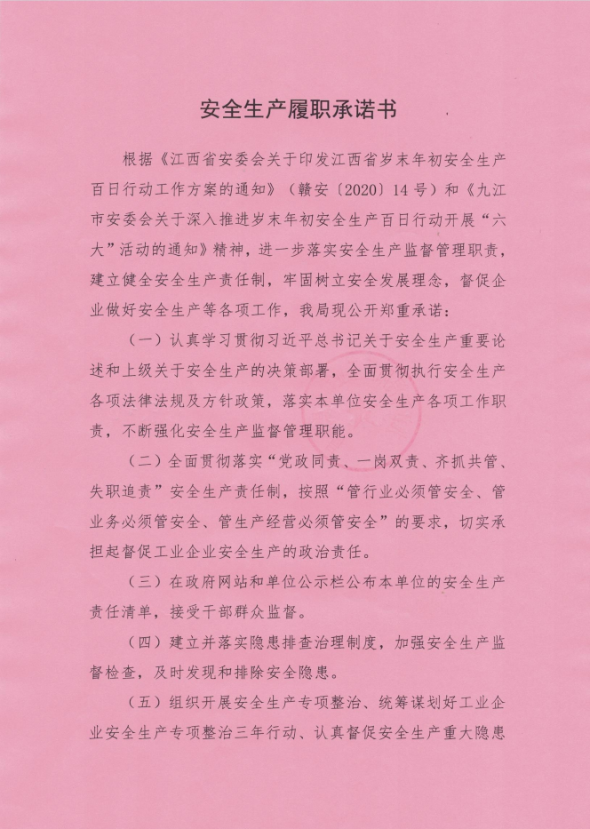 安全生产履职承诺书