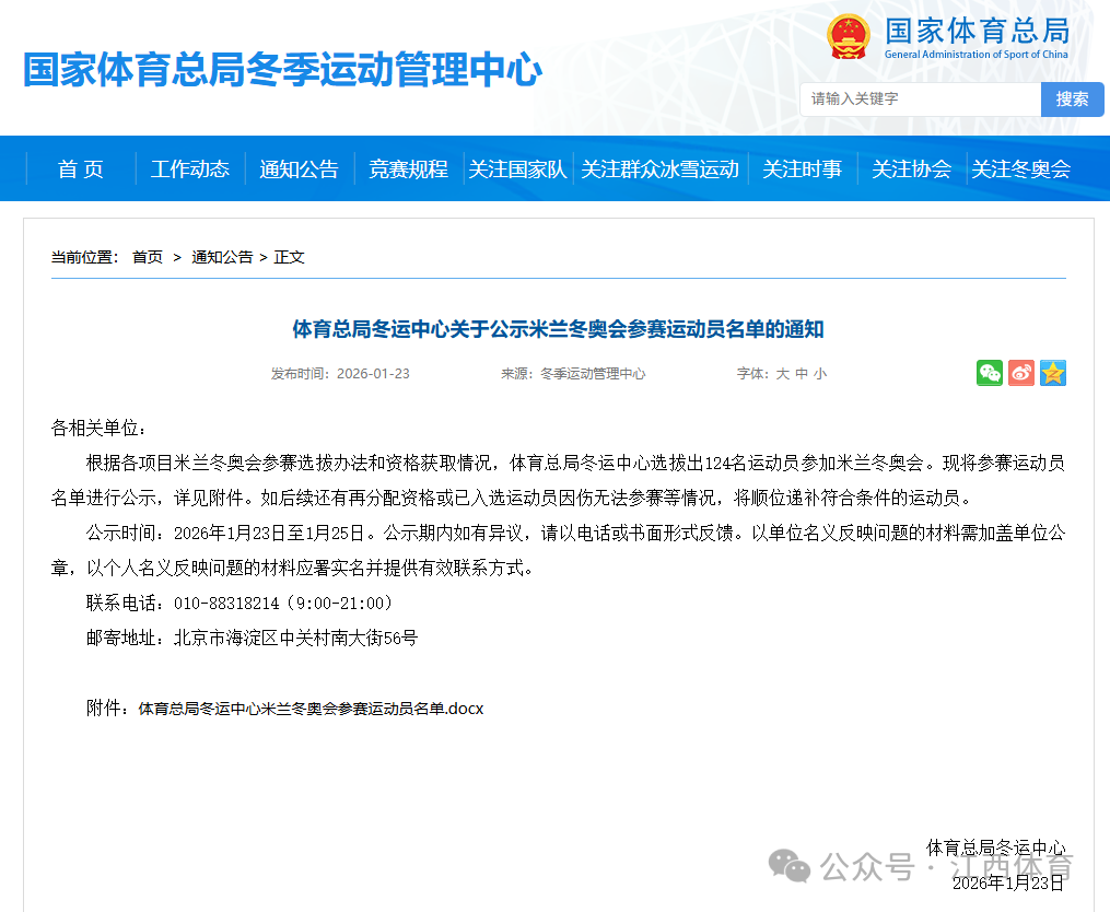 米兰冬奥会中国参赛运动员名单