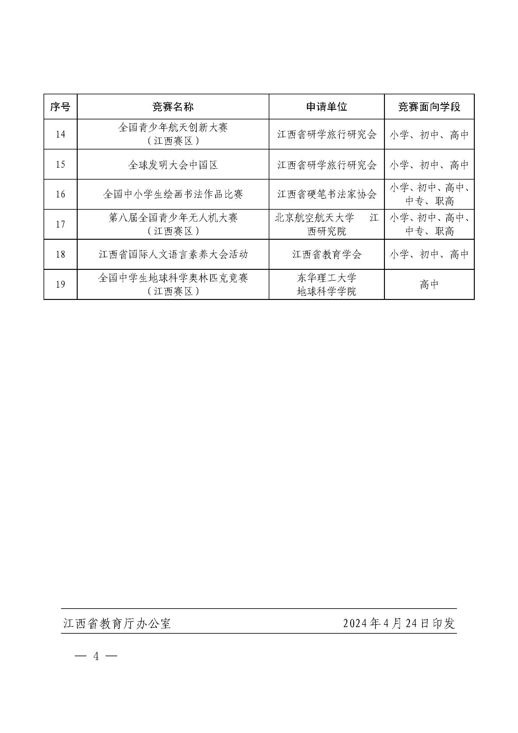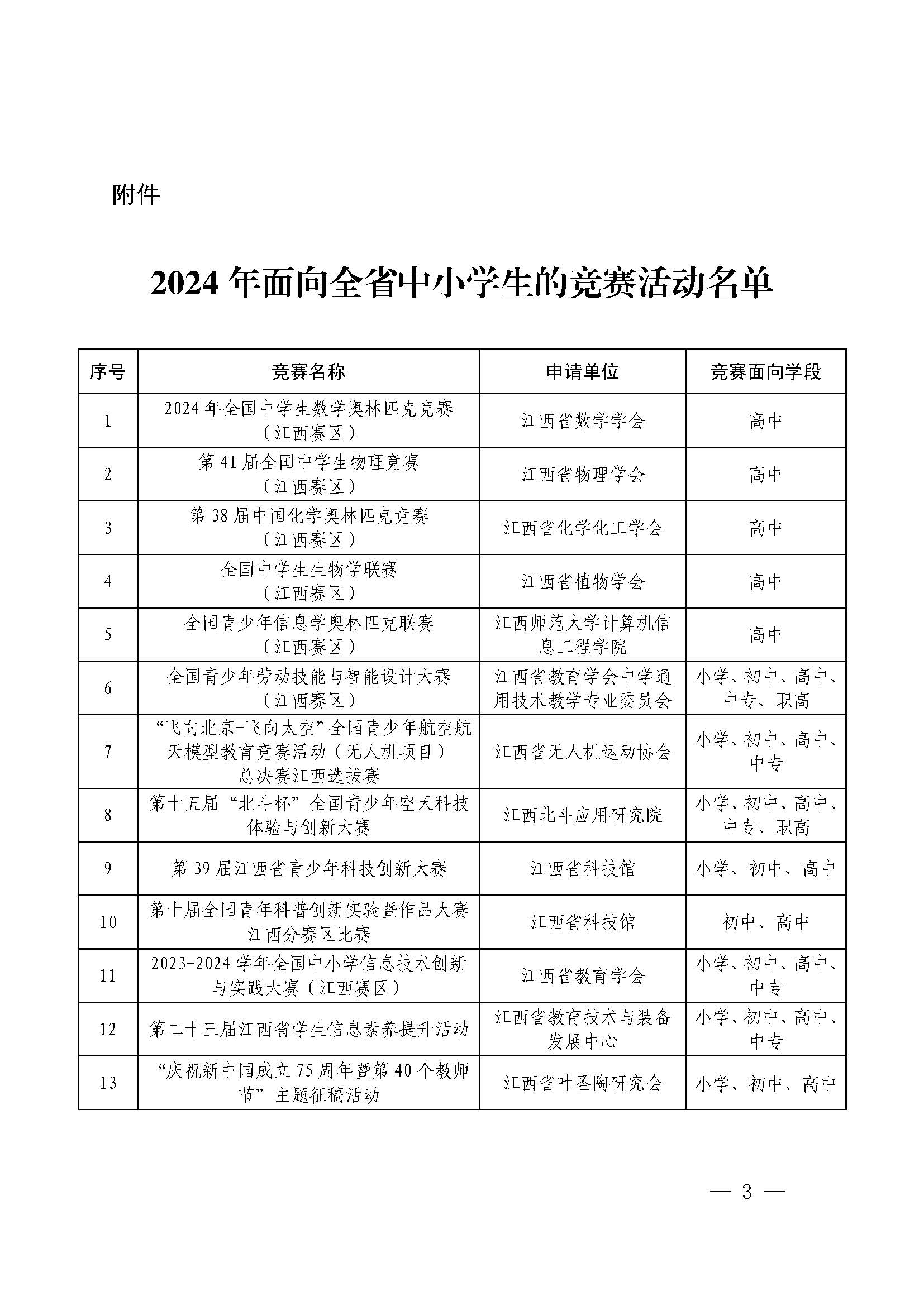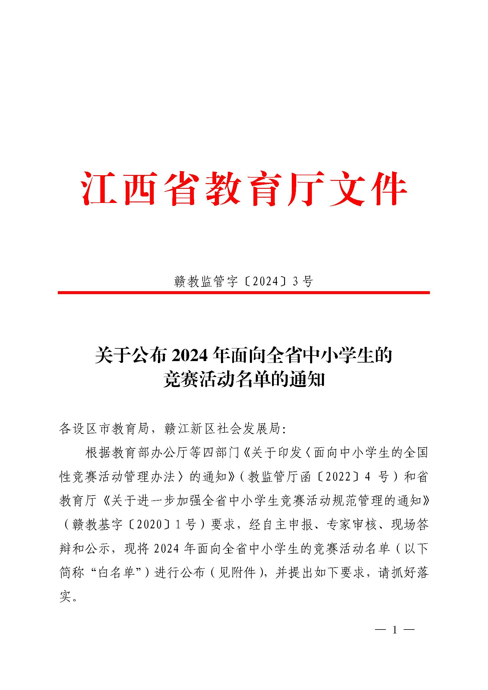 转发省教育厅关于公布2024年面向全省 中小学生的竞赛活动名单的通知