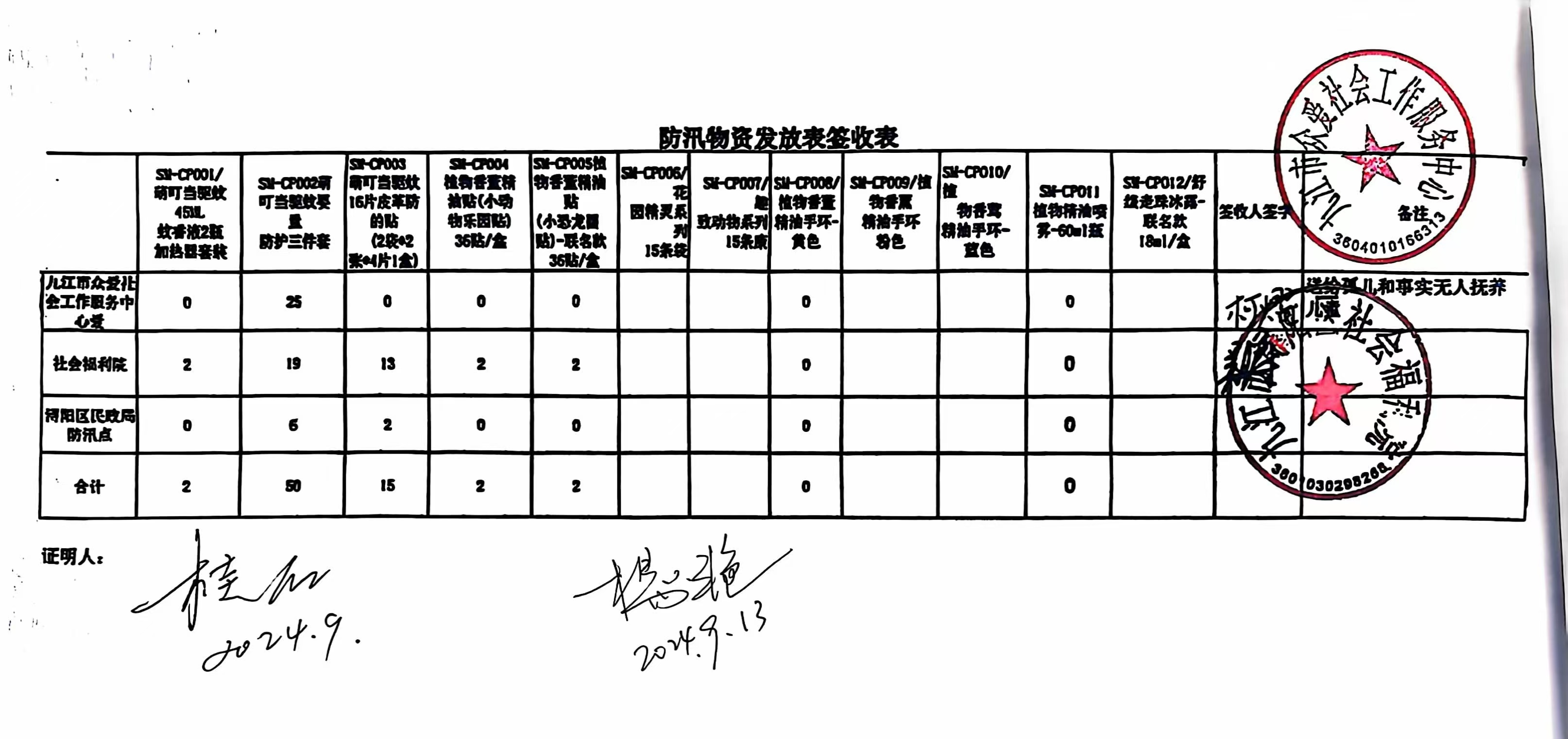 慈善捐赠物资接收回执单和物资发放签收表公示