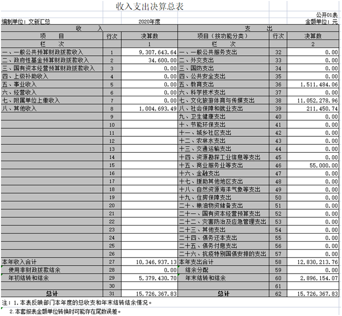 第二部分 2020年度部门决算汇总表