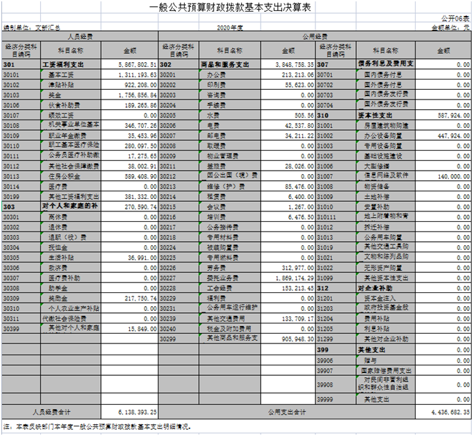 六、一般公共预算财政拨款基本支出决算表