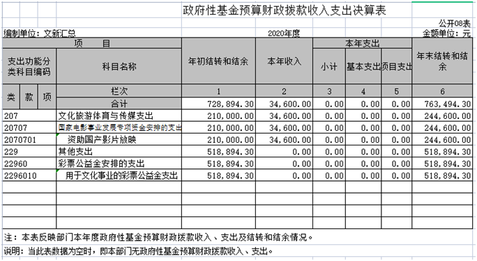 浔阳区文化新闻出版旅游局2020年度部门决算汇总说明