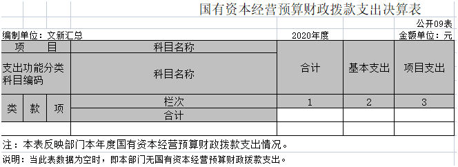 九、国有资本经营预算财政拨款支出决算表