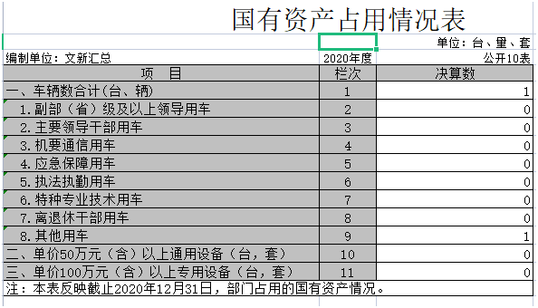 截至2020年12月31日,本单位国有资产占用情况见公开10表《国有资产占用情况表》。其中车辆中的其他用车主要是各部门对口用车。
