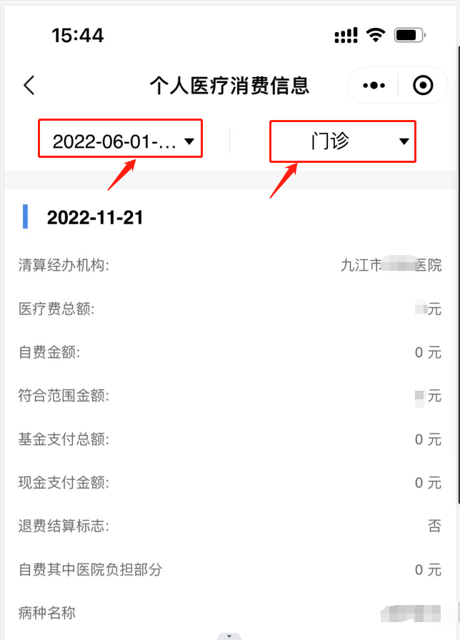 操作步骤:在微信或支付宝搜索“赣服通”进入“医保”专区“江西医保服务平台”页面,点击【医疗消费信息查询】,选定“开始-结束”时间,选定“购药、门诊、住院”医疗类别,即可查询消费记录明细。