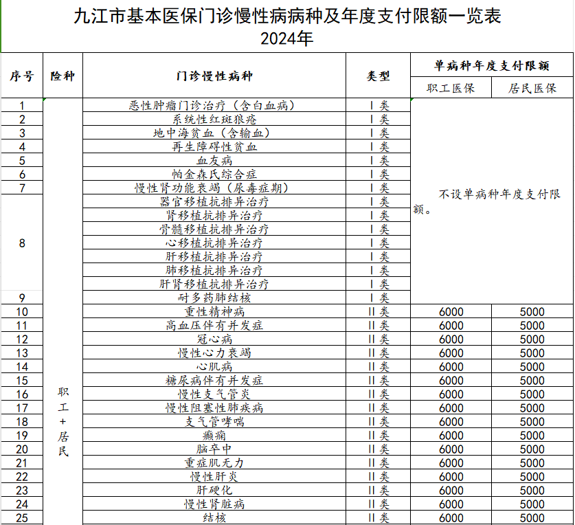 九江市基本医保门诊慢性病病种及