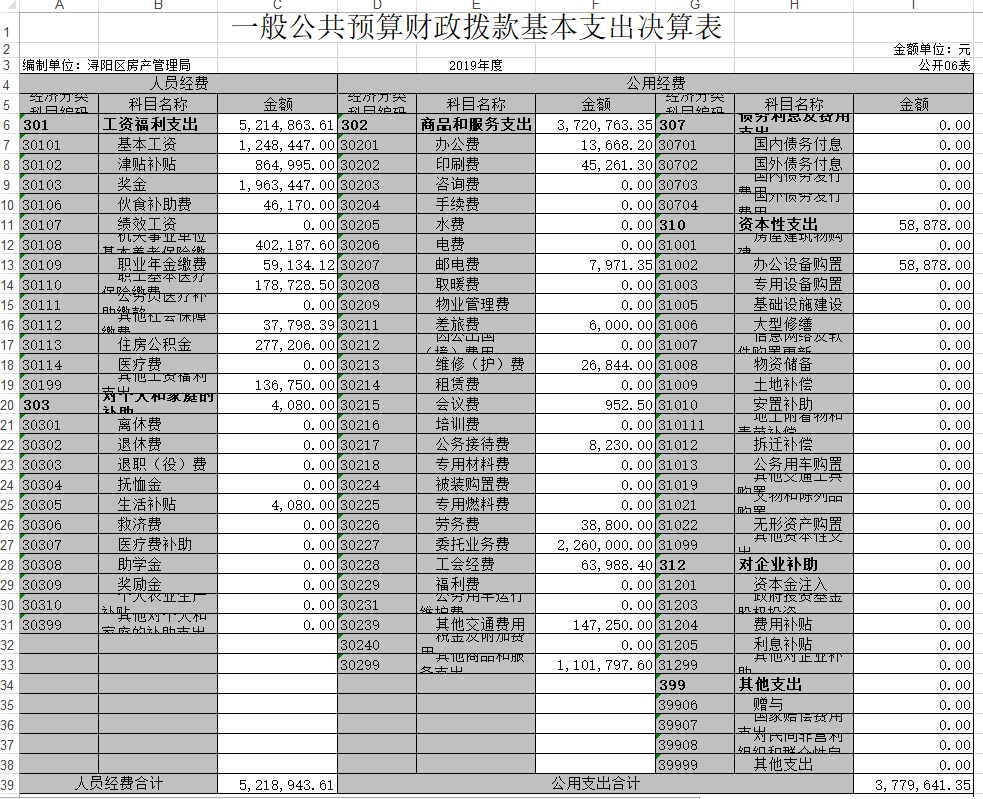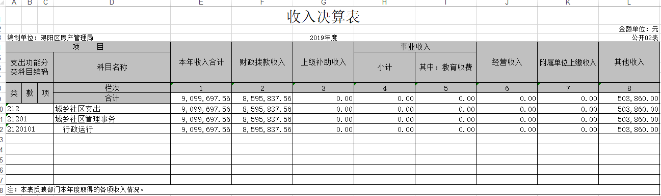 2019年房产局决算报表公开
