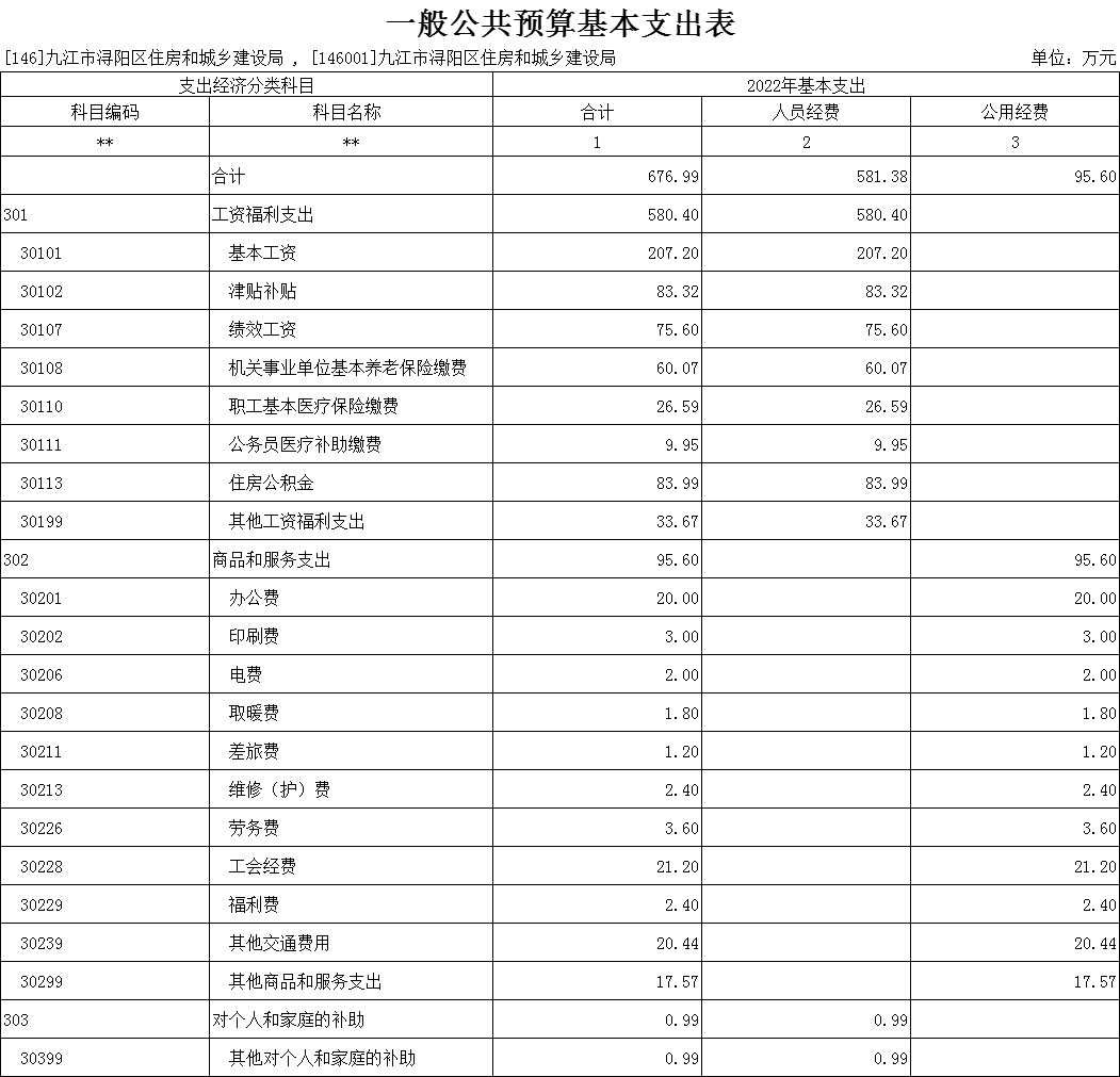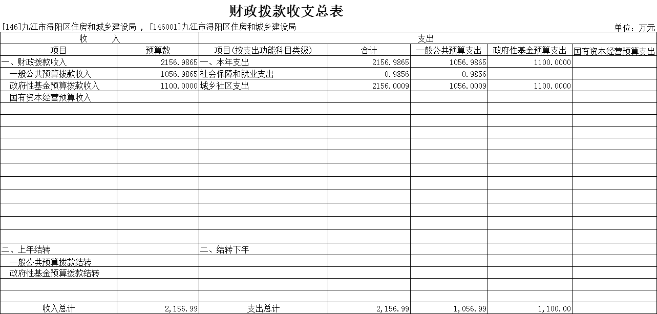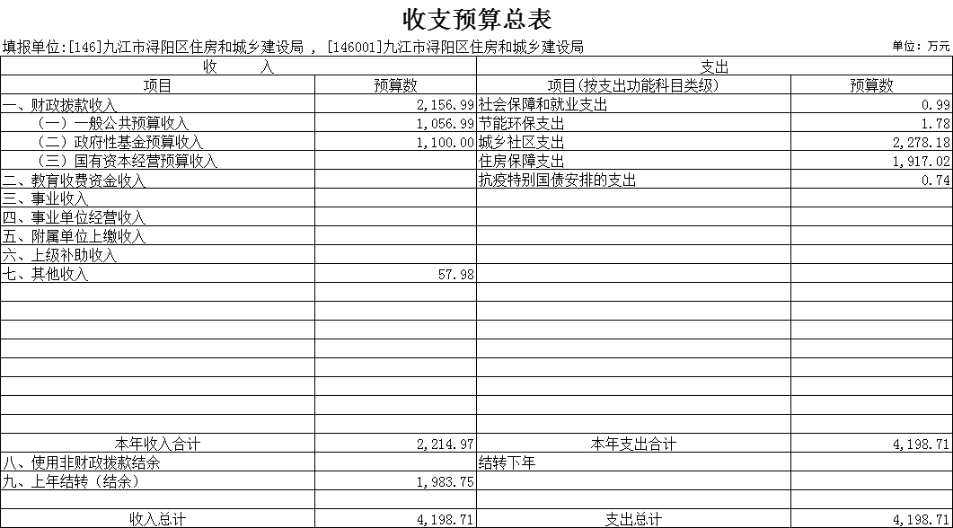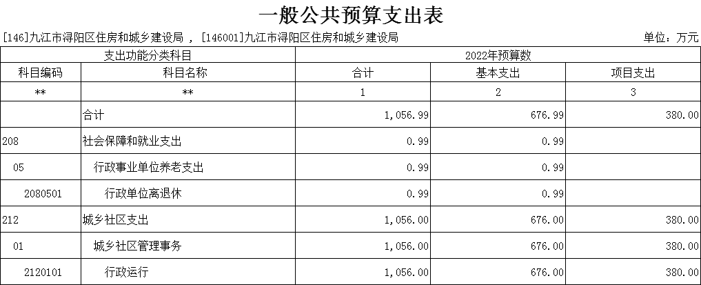 浔阳区住建局2022年部门预算表