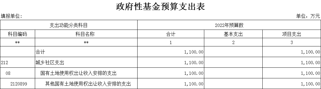 2022年浔阳区住建局政府性基金支出预算1100万元,较上年增加1100万元,具体支出情况是:城乡社区支出1100.00万元,占财政府性基金支出的100.00%。