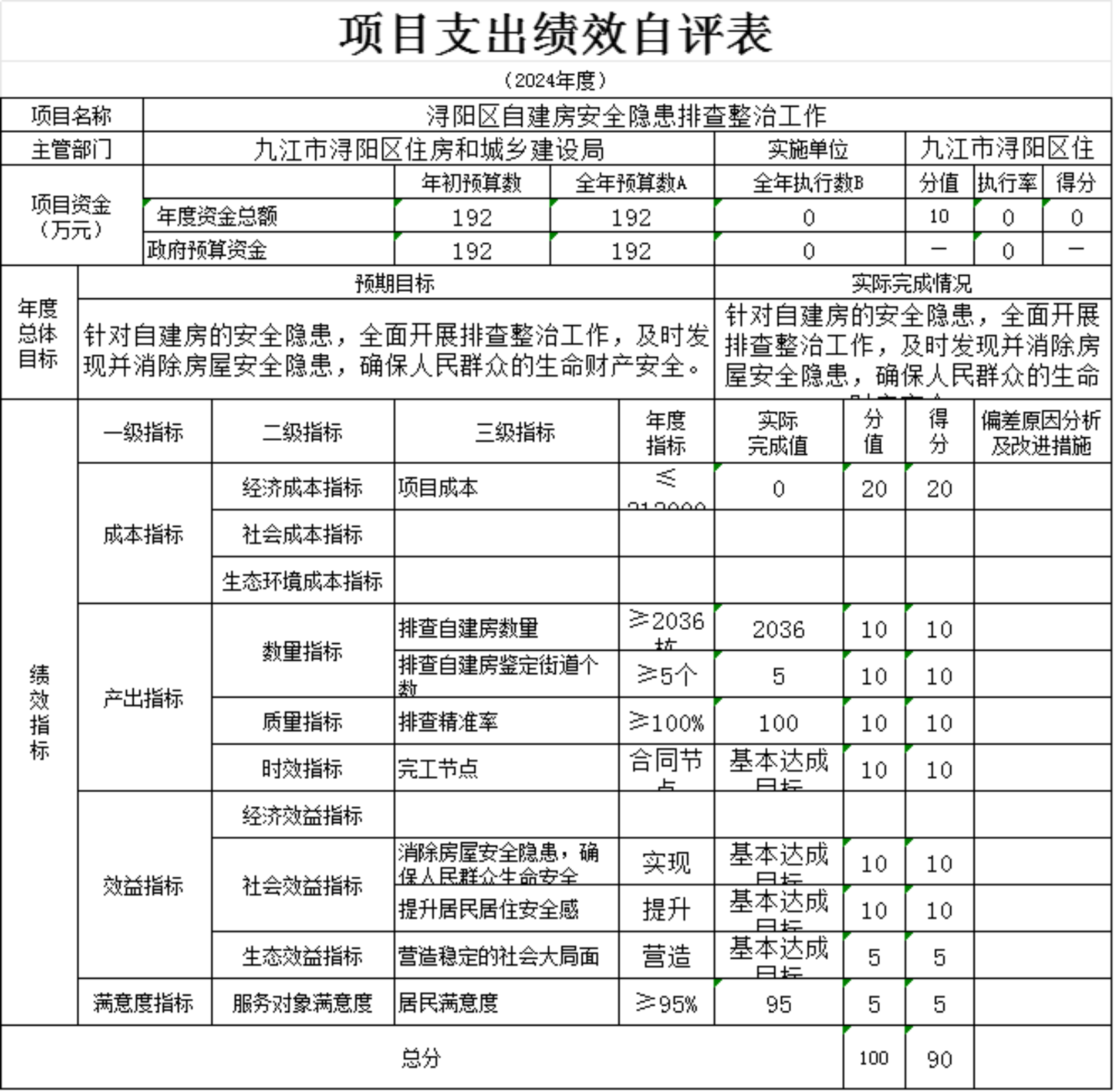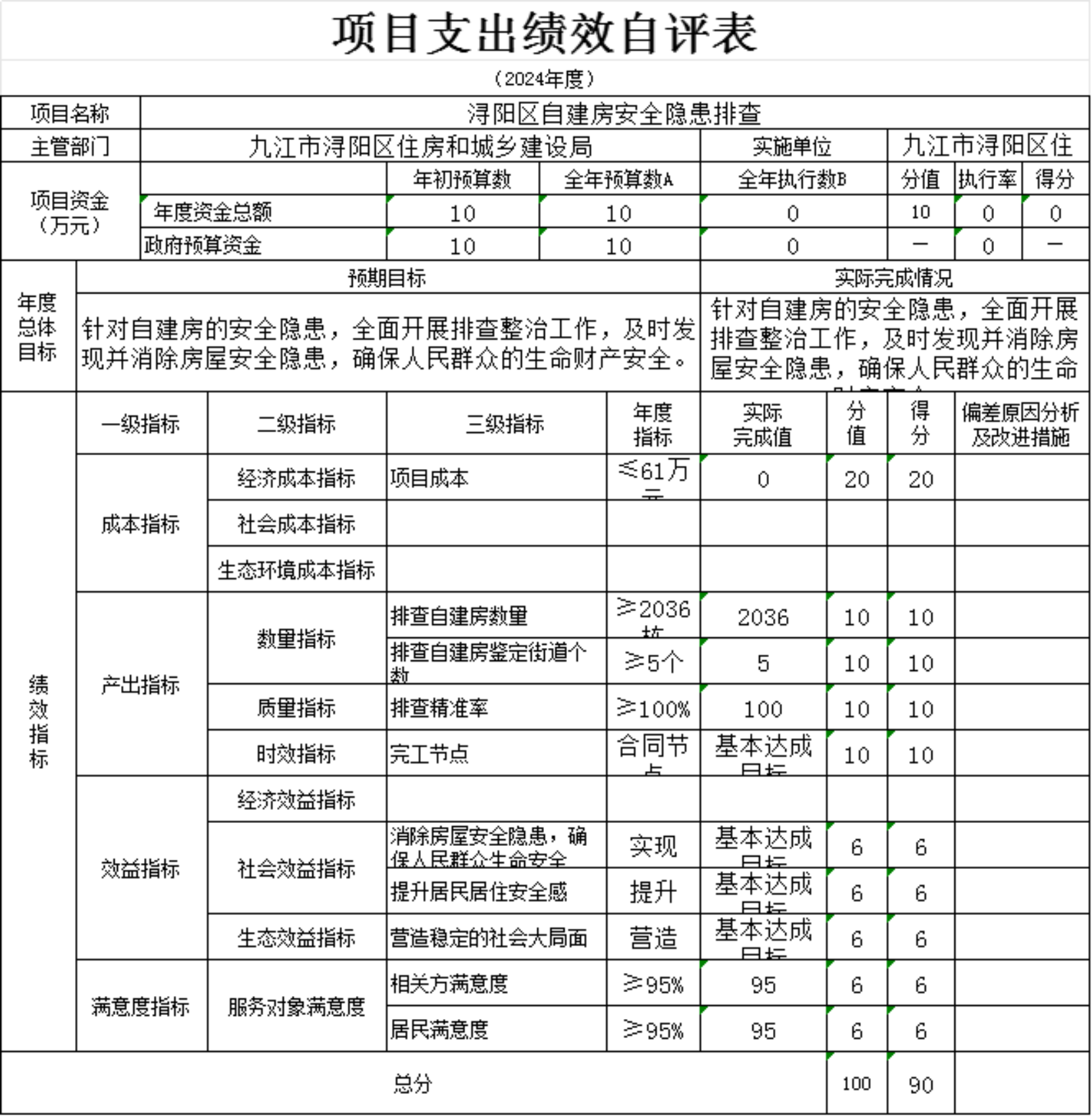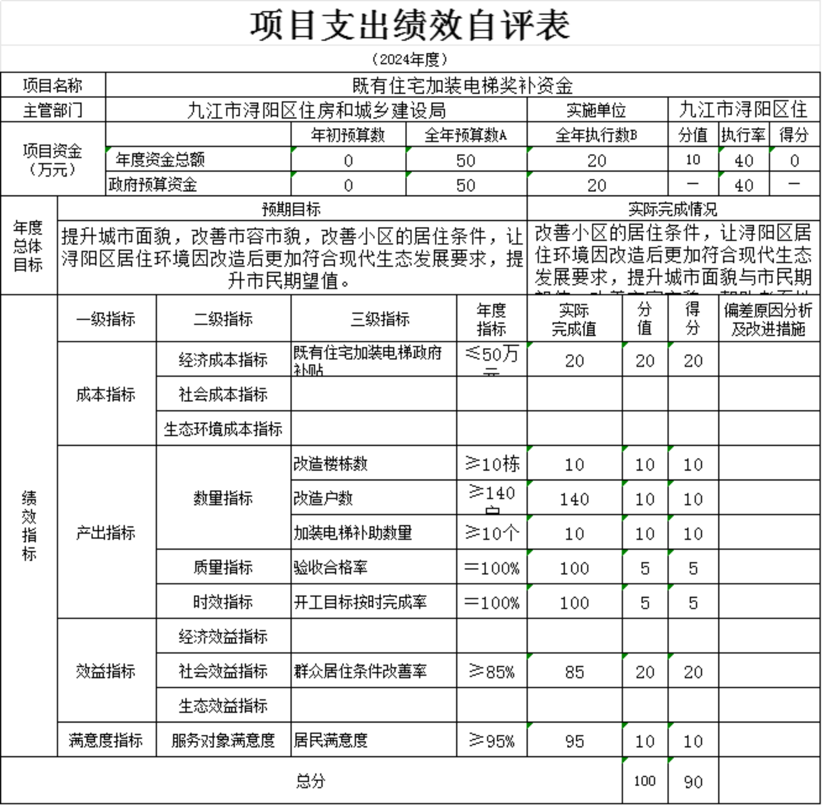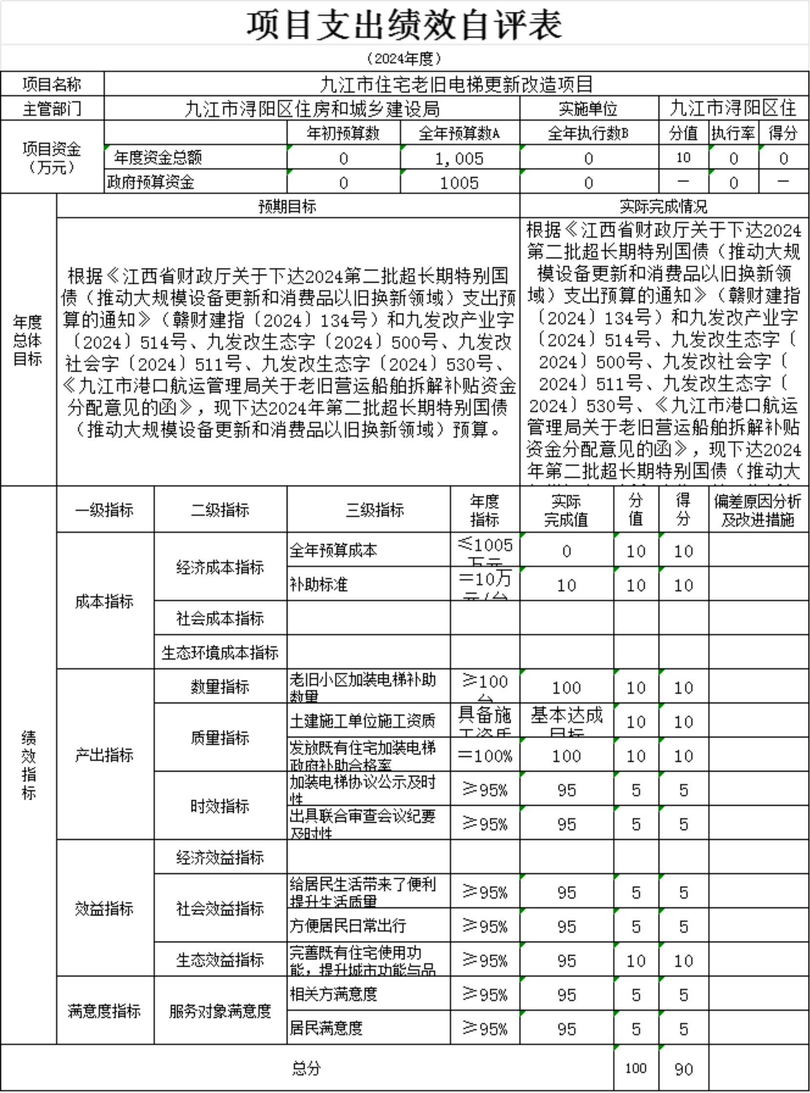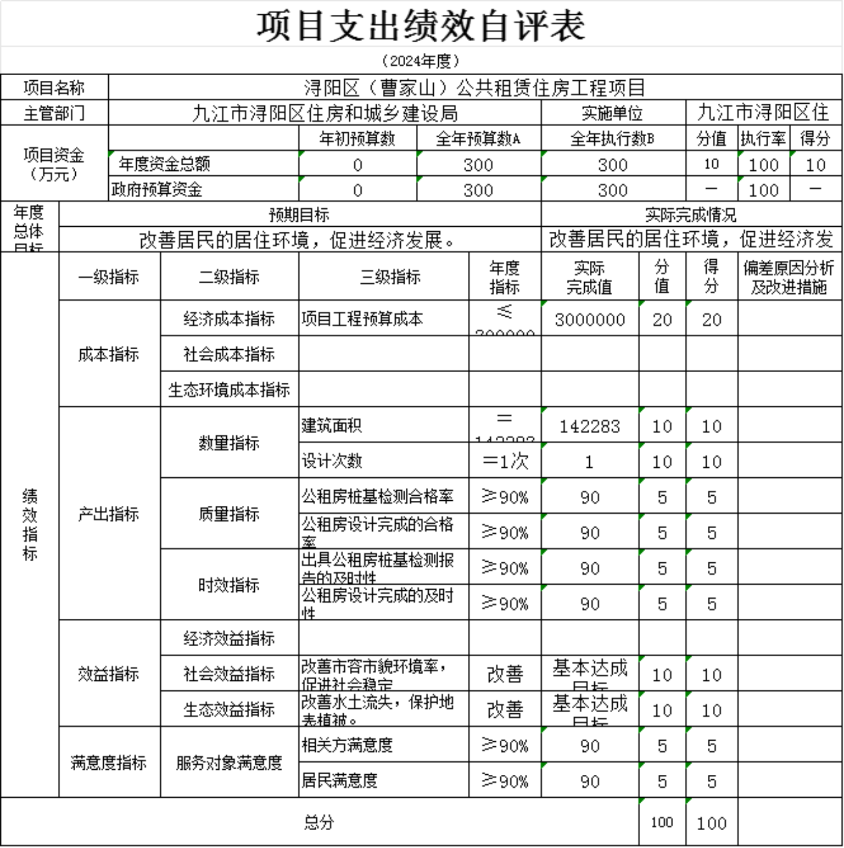 为贯彻落实中央、省、市关于全面实施预算绩效管理的要求,加强区预算绩效管理,提高财政资金使用效益,根据江西省财政厅关于印发《江西省省级项目支出和部门整体支出绩效评价管理暂行办法》的通知(赣财绩〔2022〕9号)、中共浔阳区委 浔阳区政府印发<浔阳区关于全面实施预算绩效管理的实施办法>》(浔发〔2020〕5号)等文件精神,对本单位棚改安置房房改补差款项目支出进行了绩效自评,现将自评情况报告如下: